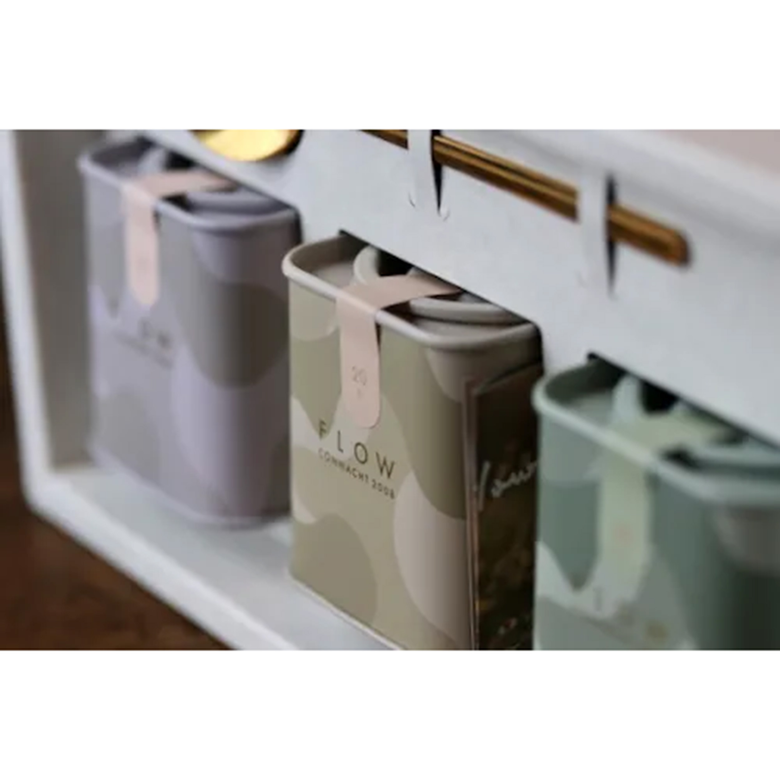 海外でもネオジャパニーズティーとして人気を集める「コノハト茶葉店」のお花のブレンドティー3種を1セットにしたギフトボックス。ローズやオンレジ、矢車菊などをブレンドしたフレーバー紅茶を小さな缶に詰めた「FLOW」シリーズです。