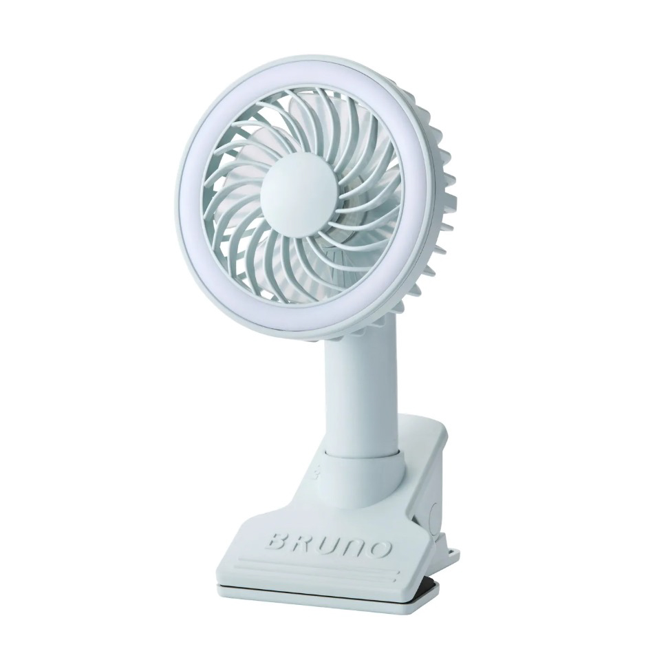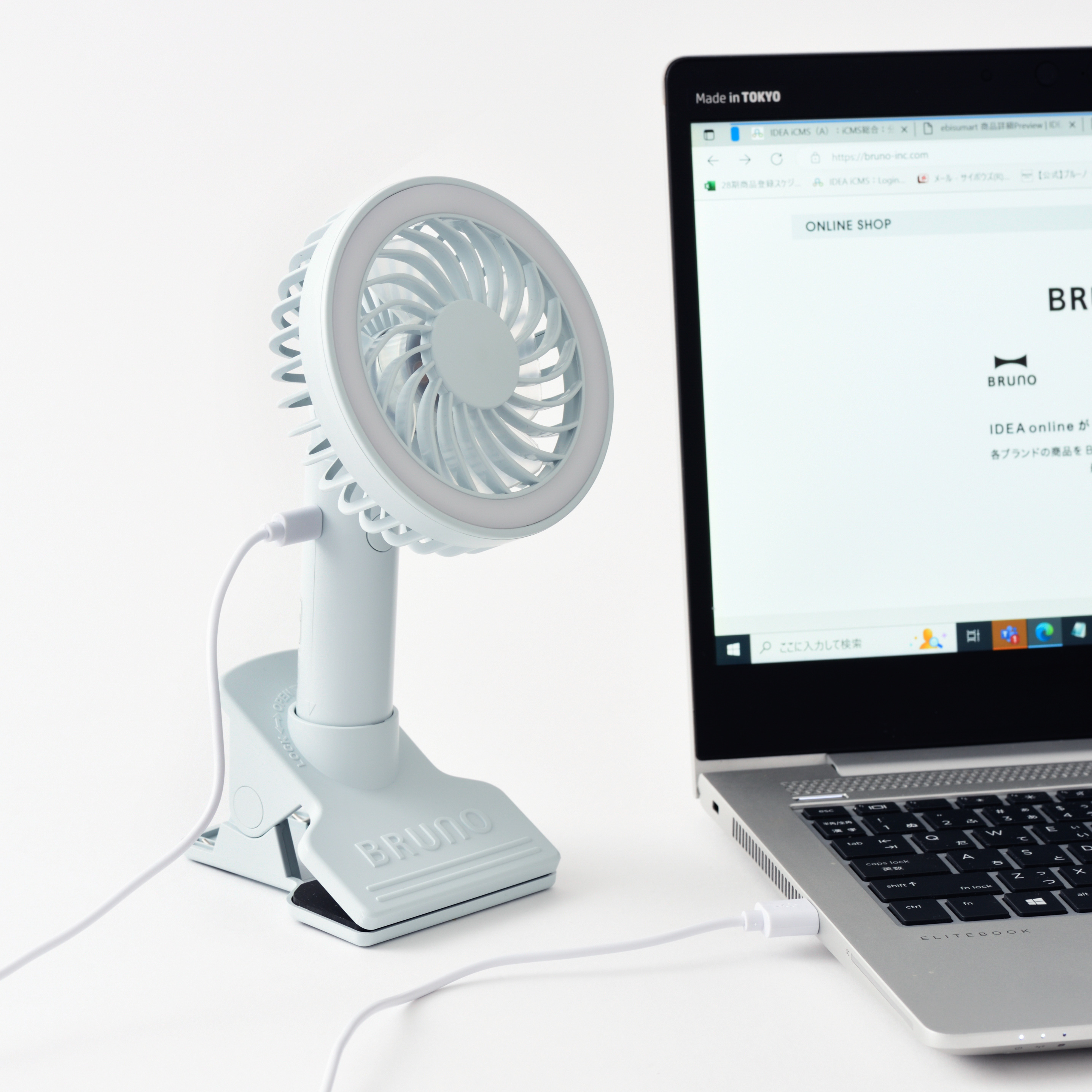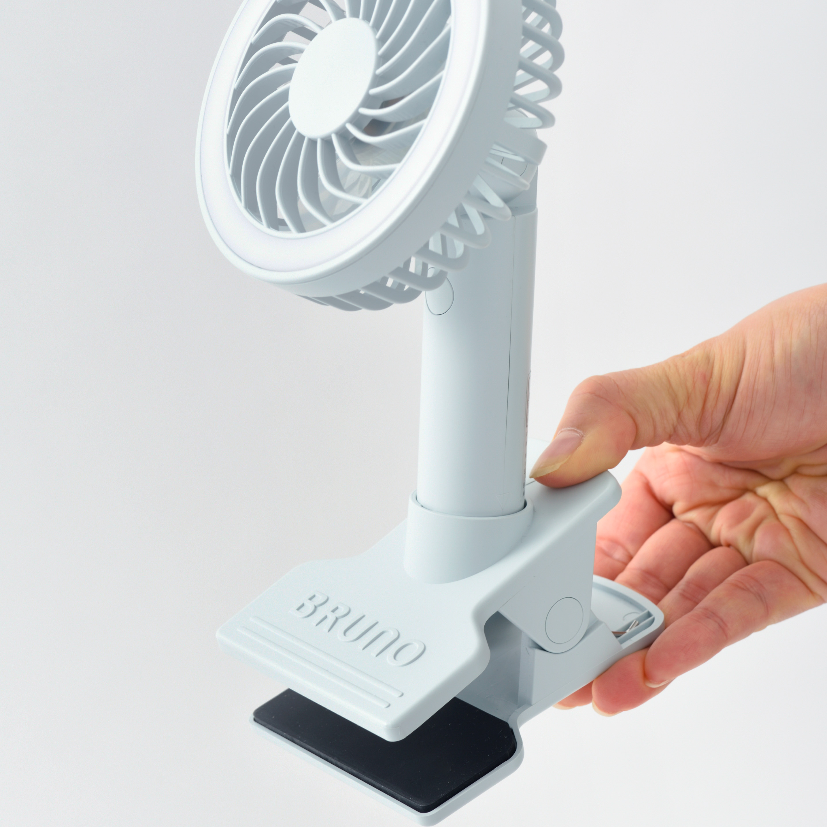 手持ちはもちろん、クリップを取り付ければデスクや日傘などに固定することができます。ライトは夜のアウトドアや写真撮影で大活躍。ファンとライトは単体使用・同時使用どちらも可能です。