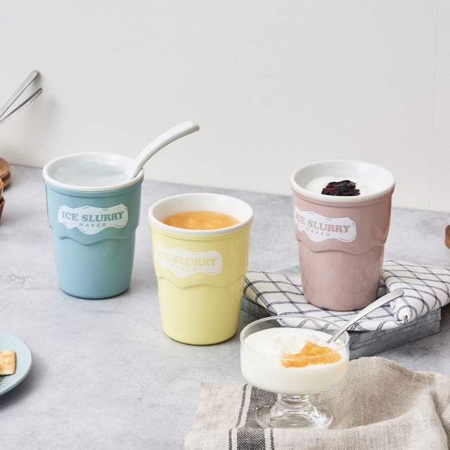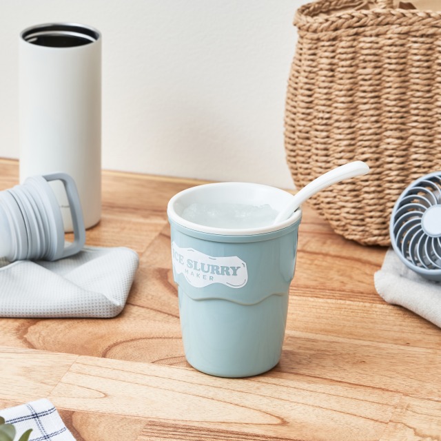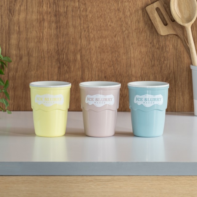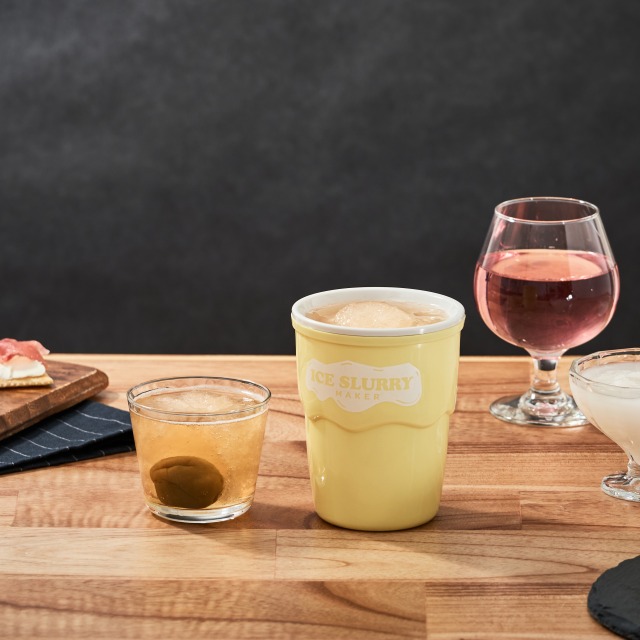 大口注文・法人のお問い合わせはこちらお好みのジュースを、凍らせたカップに注いで混ぜるだけで、話題のアイススラリーが簡単に完成! アイススラリーとは細かい氷の粒子が液体に分散した状態で、飲むことで体を内側から効率よく冷やすことができ、子供から大人まで美味しく熱中症対策ができます。 スポーツドリンクやフルーツジュースはもちろん、炭酸ドリンクやゼリー、カクテルなども使用可能で、工夫次第で様々なクールスイーツが楽しめます。 ※ジュースの糖分、乳成分の油分、アルコールの度数によっては、うまく固まらないことがあります。