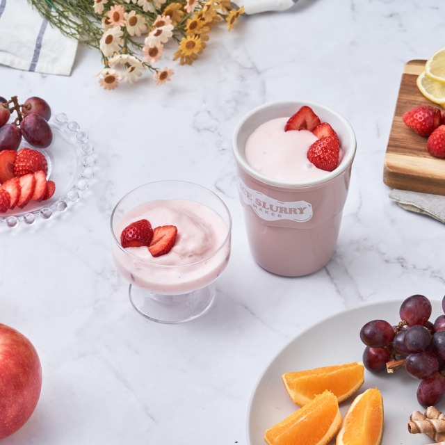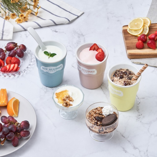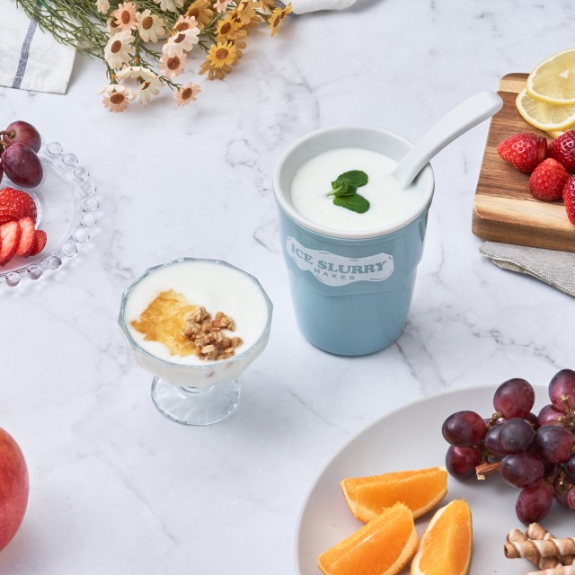 ヨーグルトやゼリーをアイススラリーメーカーでかき混ぜると、シャーベット状の美味しいクールスイーツに。工夫次第でオリジナルスイーツ作りも楽しめます。