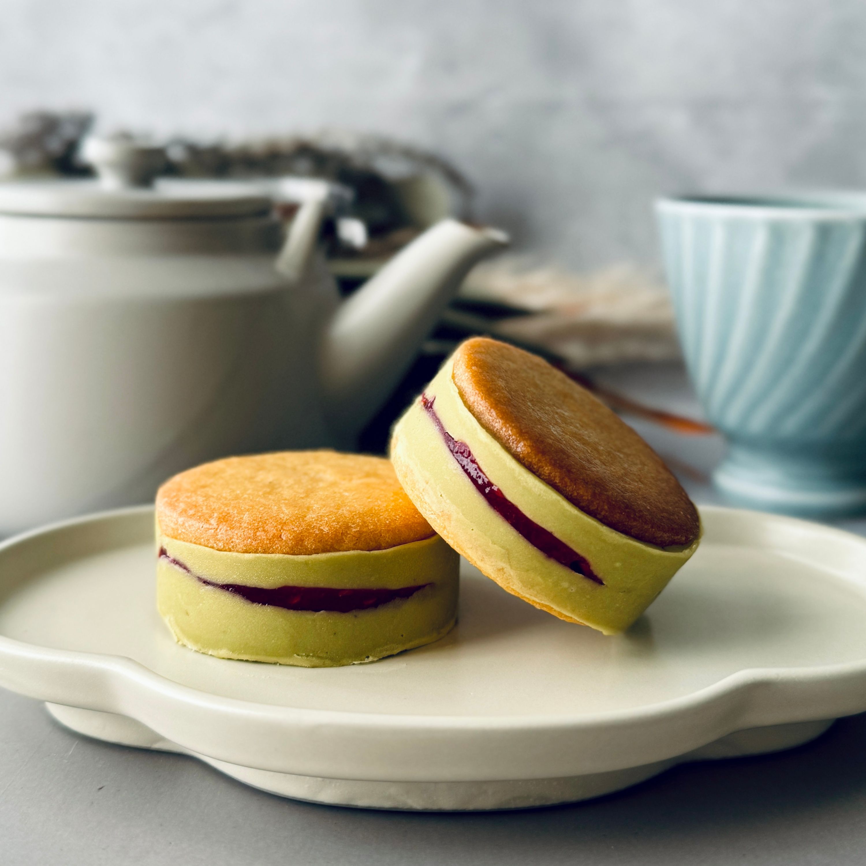 大口注文・法人のお問い合わせはこちら北海道産の最高級バターを使用した、プレミアムバターサンドの「ピスタチオ」フレーバーです。香ばしくてまろやかな味わいのピスタチオに、甘酸っぱいフランボワーズの風味が生きたバランスの良い味わいです。 冷凍で食べると、ザクザクとした食感で、まるでアイスを食べているような感覚に。少し解凍すると、バタークリームがバスク生地に染み込み、滑らかでしっとりとした食感になり、2通りの楽しみ方が可能です。