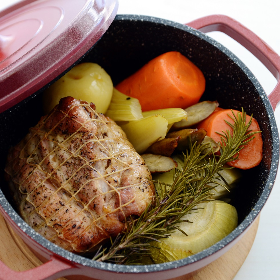 キャセロールはオーブン調理もできるので、料理の幅が格段に広がります。 お肉をローストしたり、パンやケーキを焼いたり、本格的な料理をお楽しみください。 ステンレスのツマミを使えば、フタをしたまま調理できます。 ※240℃以下で調理してください