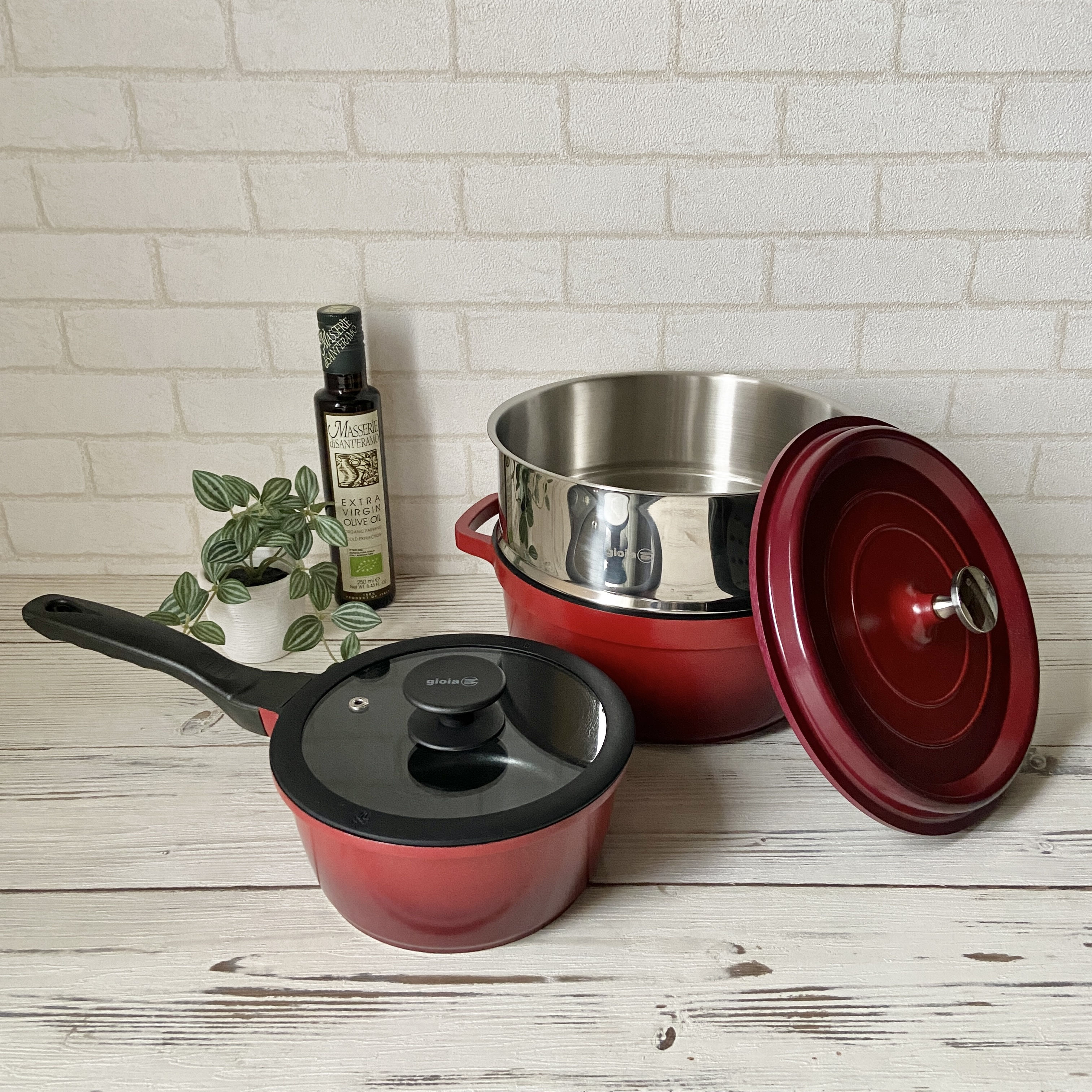 大口注文・法人のお問い合わせはこちらイタリア語で「ジョイア」は「喜び、楽しさ」のこと。とても軽いアルミダイカスト製のキャセロールシリーズです。 カラーはレッドとブラックの2色をご用意。 料理好きな母へのプレゼントに。新婚のご友人へのプレゼントに。