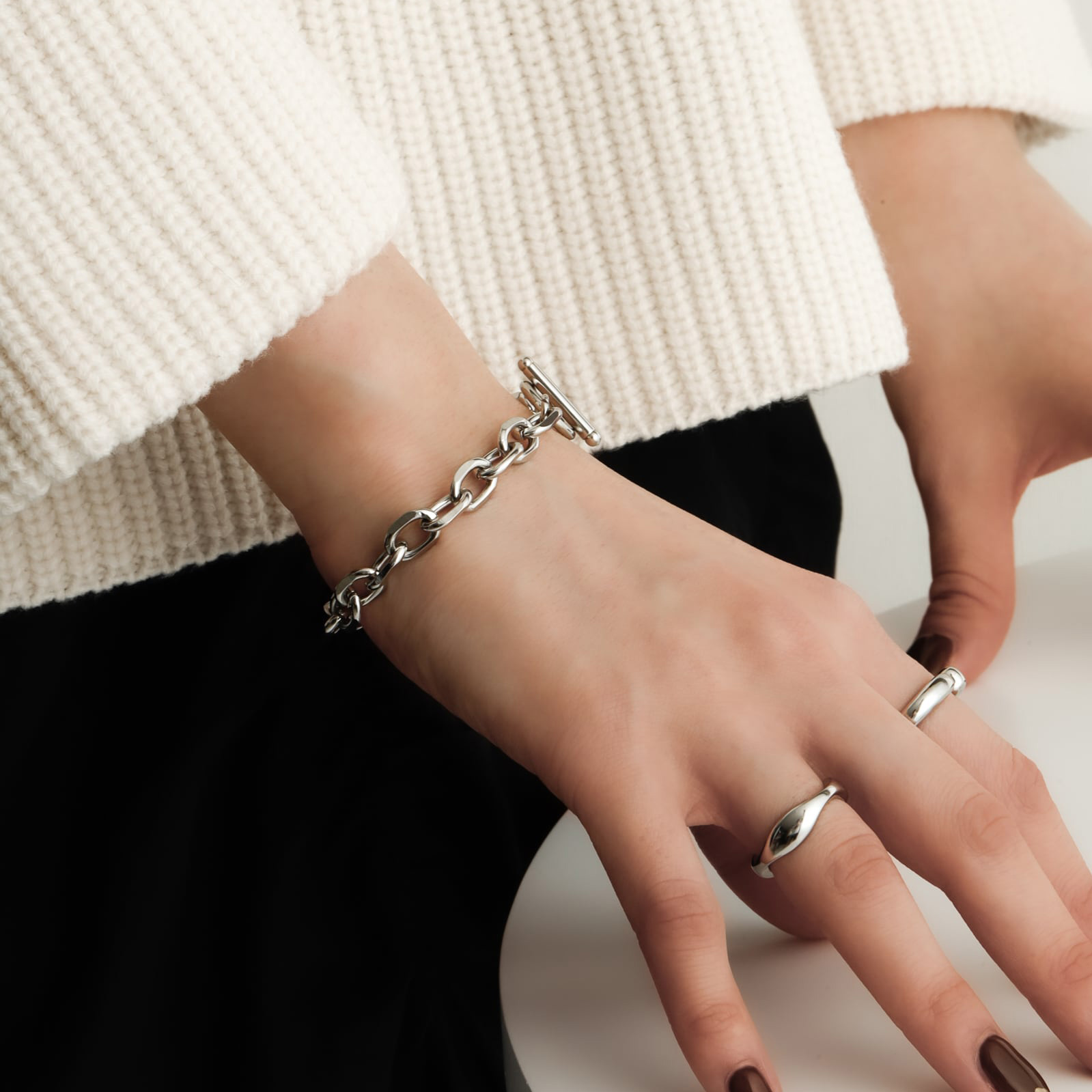 大口注文・法人のお問い合わせはこちらこだわりのチャーン形状と洗練されたカットデザインが際立つブレスレットをペアでお届けします。お揃いのアクセサリーは、ふたりの絆を深めてくれる、素敵な贈り物です。ユニセックスでお使いいただけるので、パートナーとのペアアクセサリーにもおすすめです。 女性はSサイズ、男性はMサイズがオススメです。 *サイズに関しては個人差が有るので商品の寸法をご確認ください*