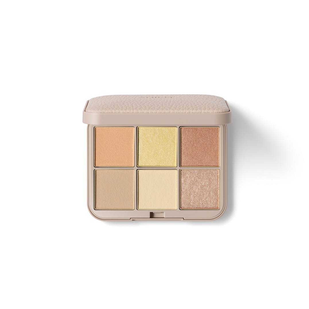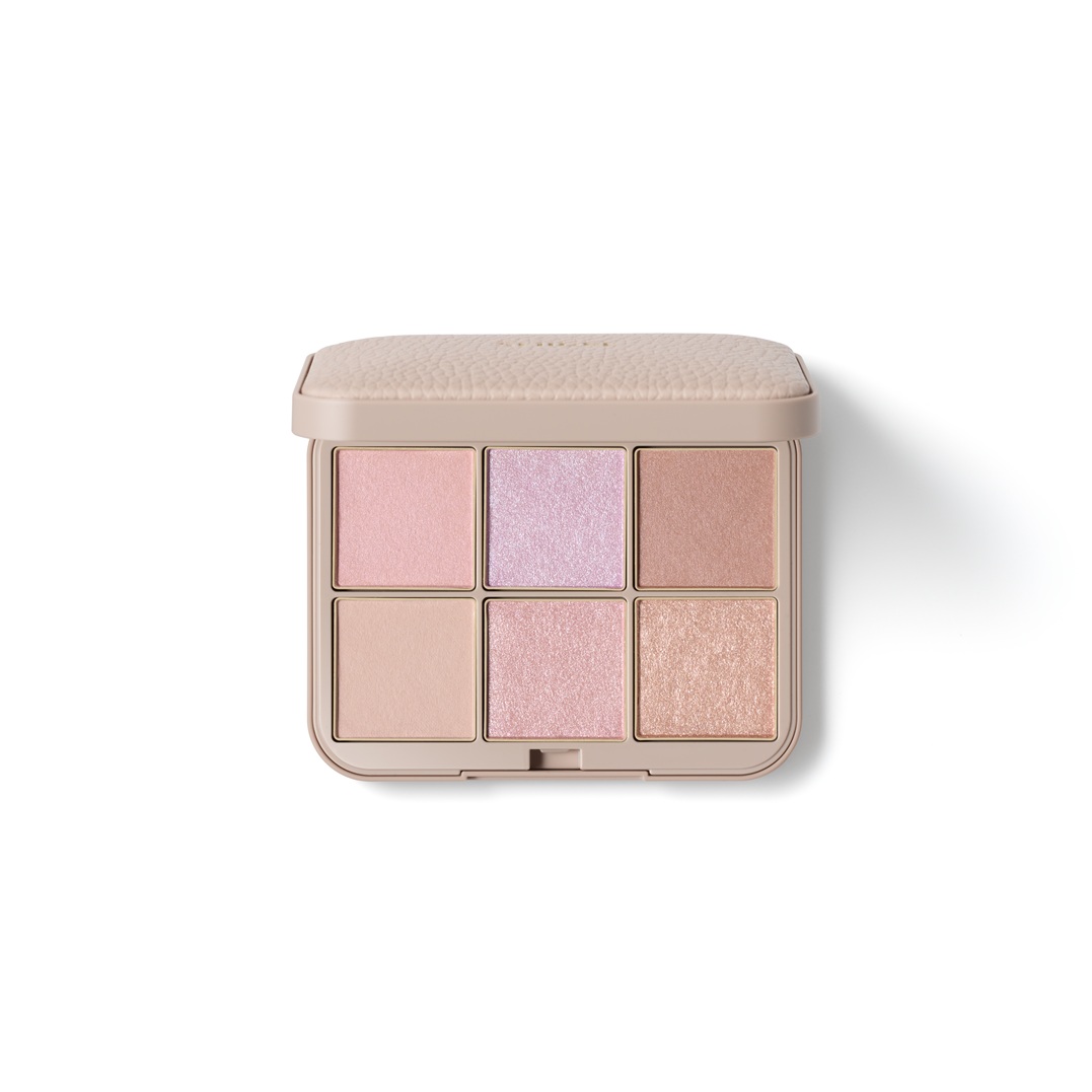 青みパレットもほしい。そんな多くの声に応えて、偏光パールがゆらめくラベンダーやシアーなピンクを中心に、石井さんが考え抜いた6つのカラーを配色。ブルーベースの方はもちろん、イエローベースの方でも浮くことなくくすむことなく溶け込むようになじみ、透明感を高めきり、ミュートトーンながら洗練された印象を刻む。