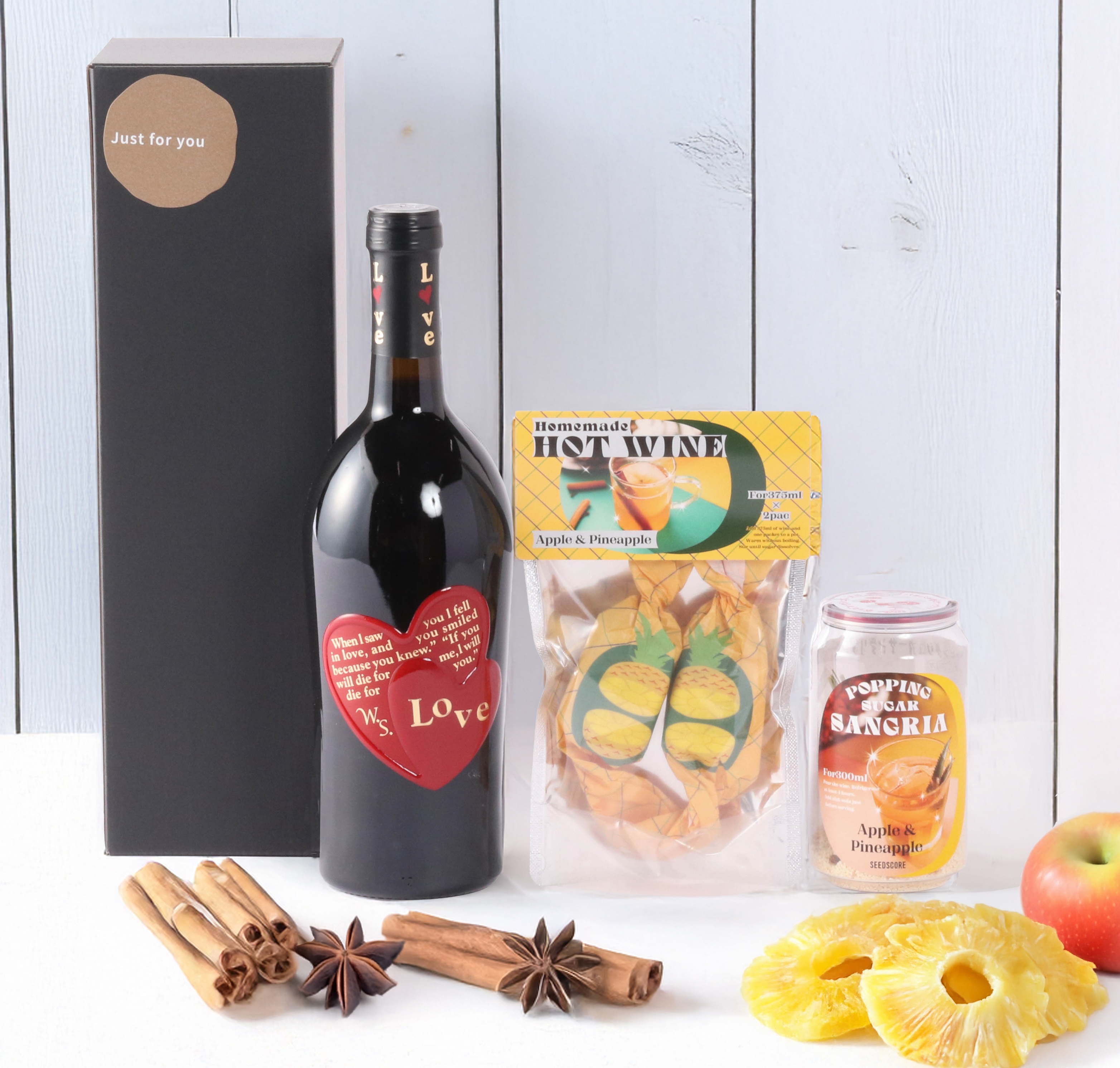 芳醇な赤いチェリーやプラムの果実味と柔らかなタンニンのバランスが程よく、ほんのりとカカオが香る愛らしい味わいのワインとフルーティーなサングリアのセット。スパイスミックス入りで、お好みの味に調節してお楽しみいただけます。