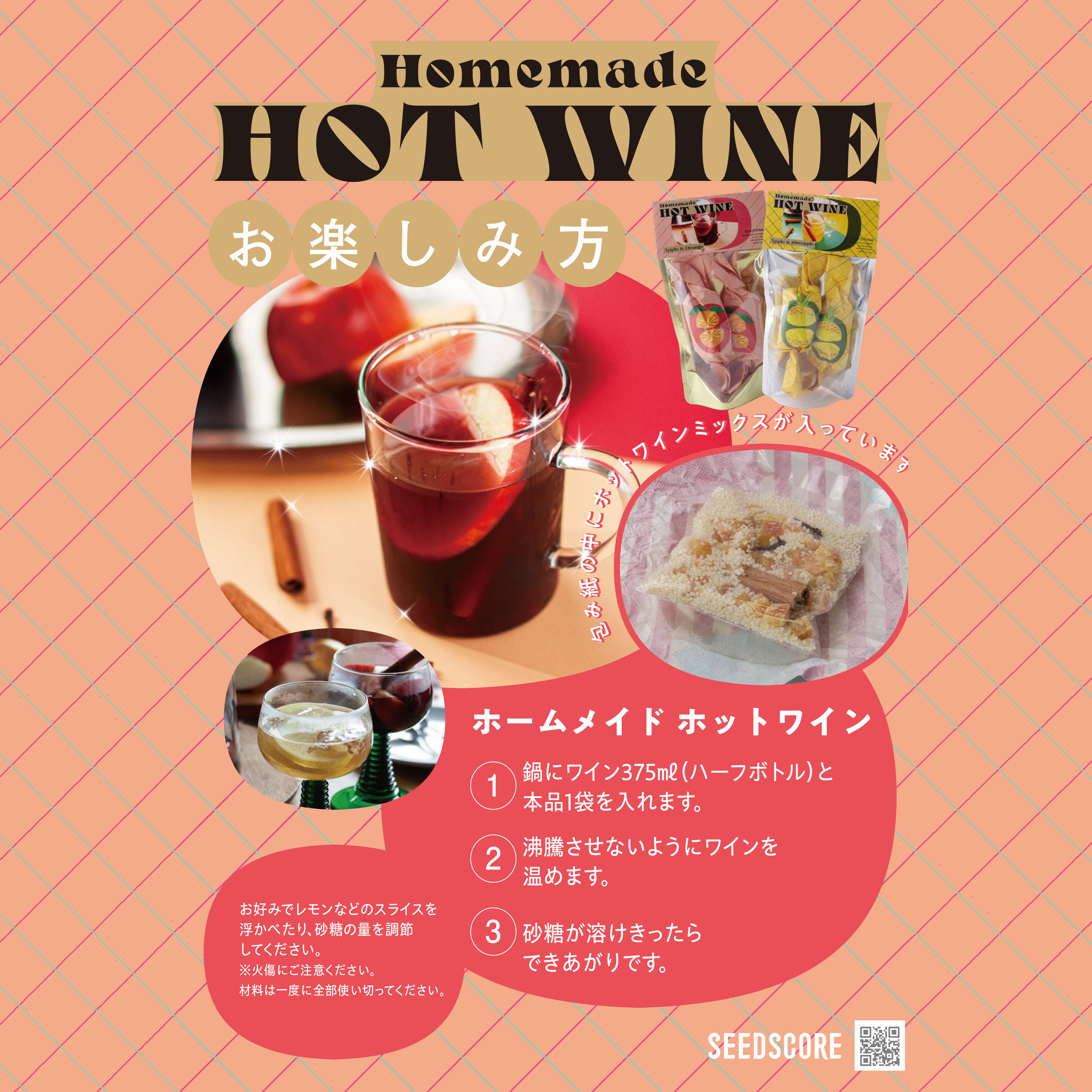 果物やスパイスの香りが楽しめるホットワインの素。 ご自宅で手軽にホットワインが楽しめます。