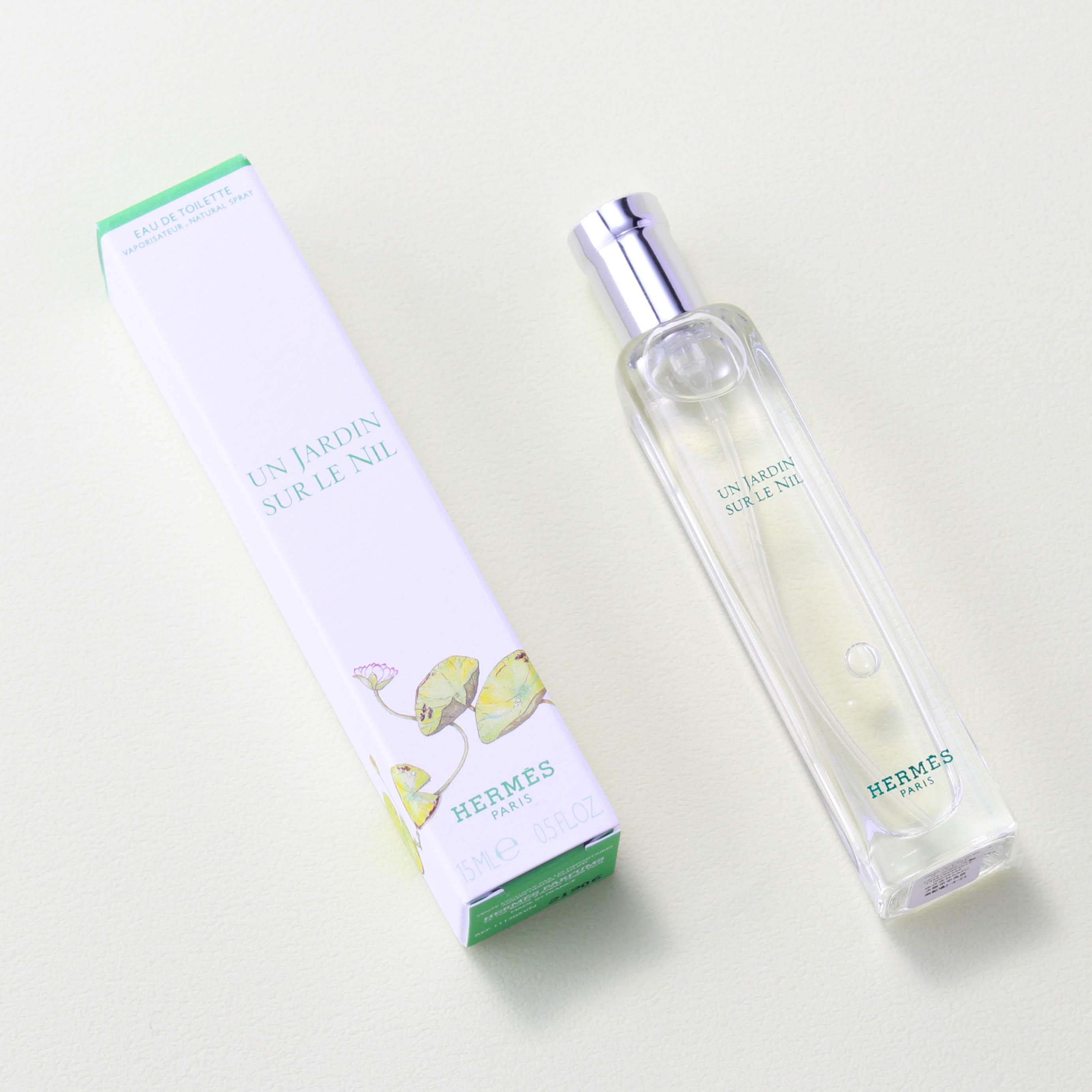 HERMESのフレグランス、庭園シリーズより、中でも人気な「ナイルの庭」。持ち運びに便利な15mlサイズが登場。いつでもどこでも香りを楽しめます。陽光と生命力、自然の豊かさときらきらとした輝きのある庭。フレッシュなグリーンマンゴー、繊細なロータス、エレガントなシカモアを思わせる香りです。