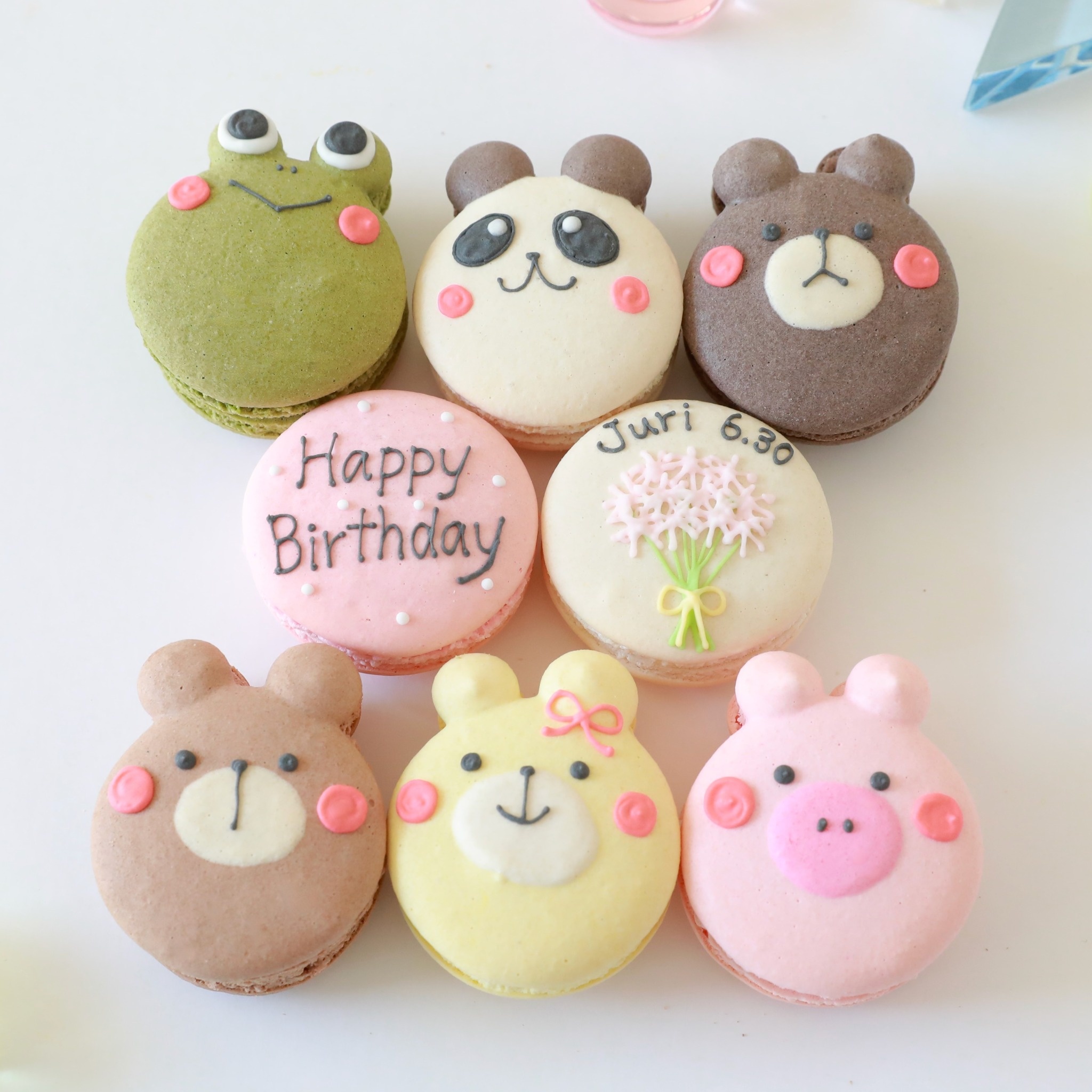あなたの想いをカタチに。オーダーメイドマカロンの専門店「ココマカロン」で一番人気の動物マカロンに、お名前や日付などのメッセージを添えて。素材にこだわり、一つひとつ手描きで仕上げる世界にひとつだけのギフトです。