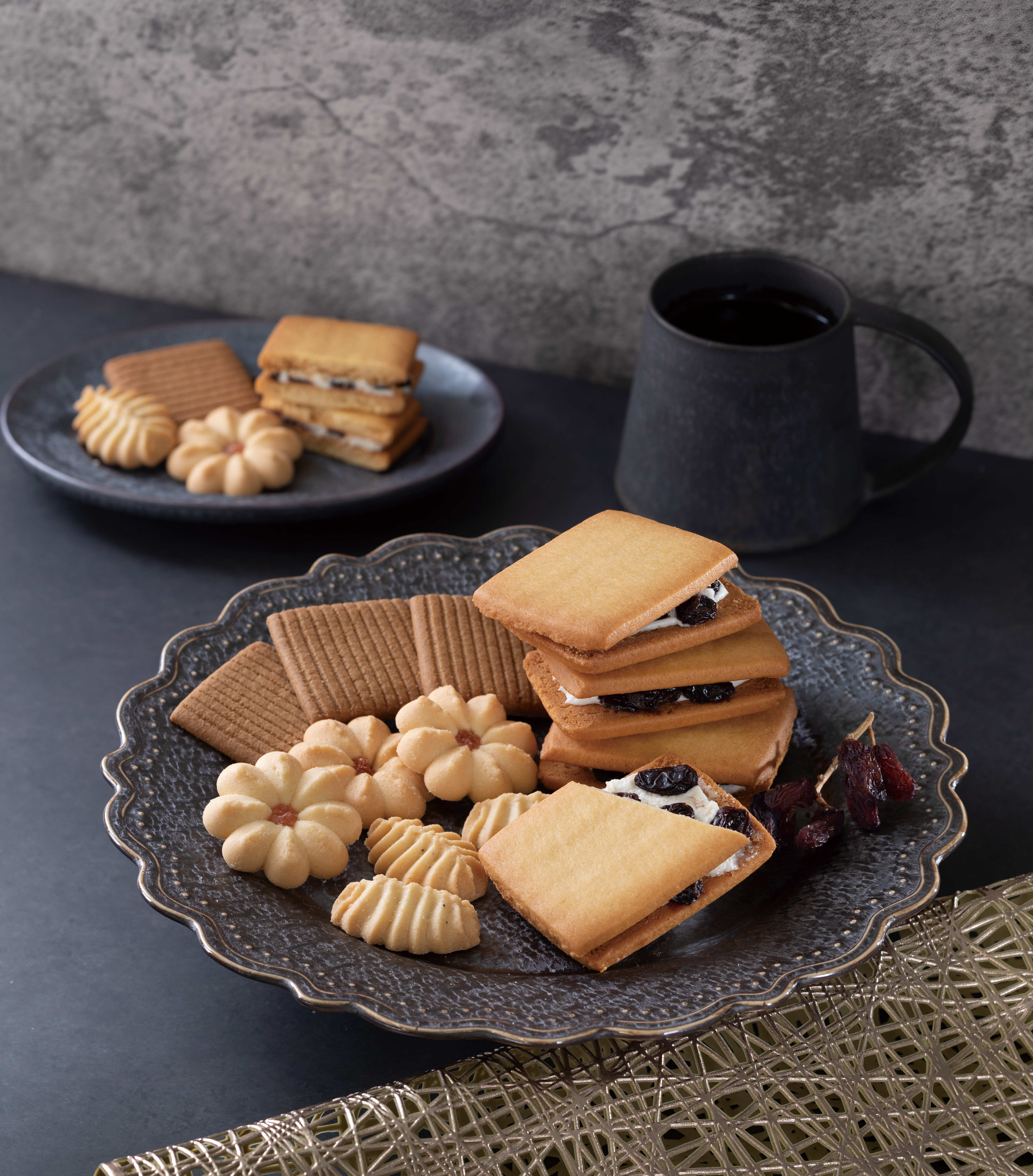 大口注文・法人のお問い合わせはこちらさっくりと焼き上げたサブレ生地に、ラム酒のシロップに漬け込んだ柔らかなレーズンをくちどけなめらかなホワイトクリームと共にサンドしました。