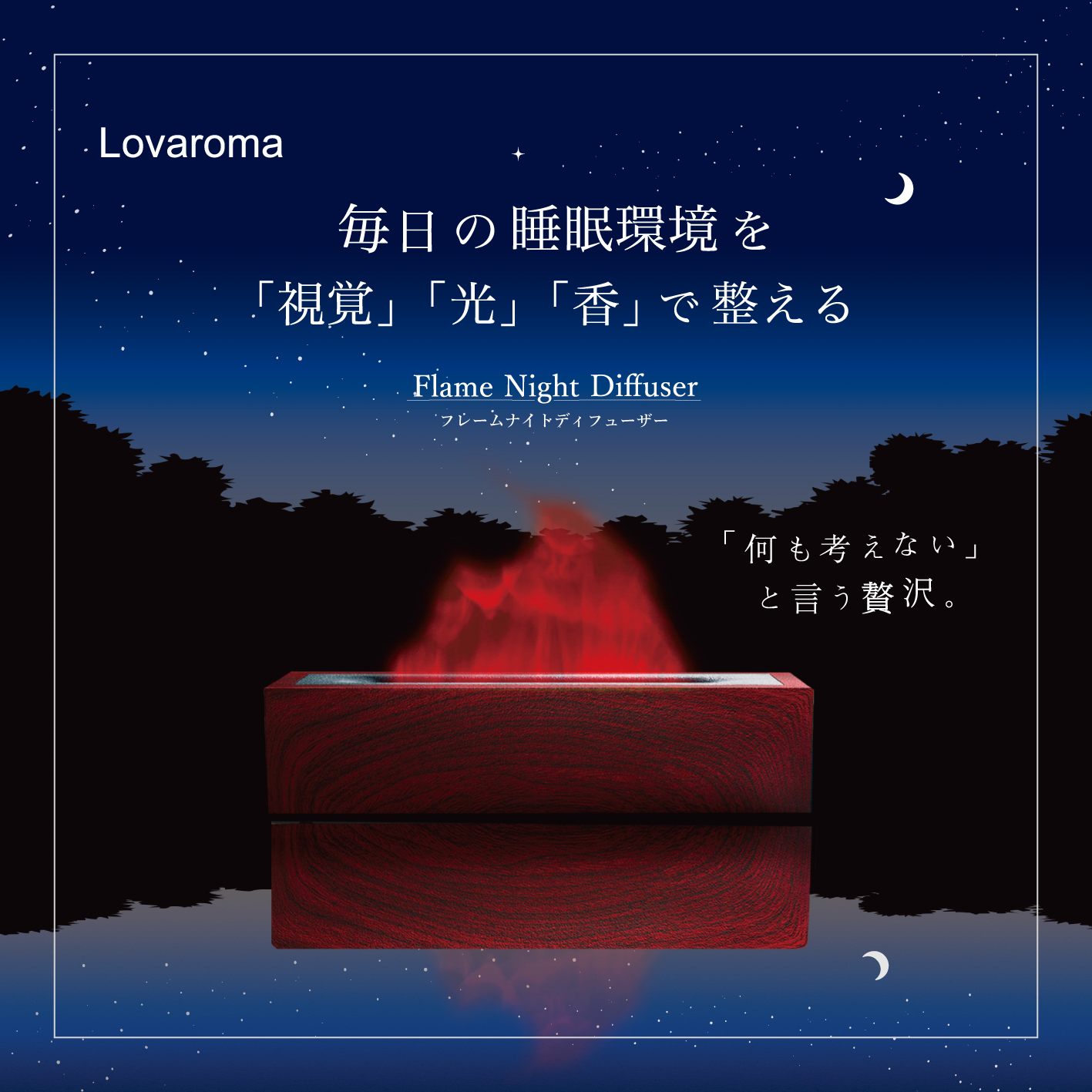 大口注文・法人のお問い合わせはこちらSNSやスマホの使用による「情報疲れ」を感じている30〜50代の間で、睡眠環境を整えるアイテムへの関心が高まっています。本製品は、「炎のゆらぎ」を再現したミストとライトに、天然アロマの香りを組み合わせることで、視覚、光、嗅覚から深いリラックスを促します。
