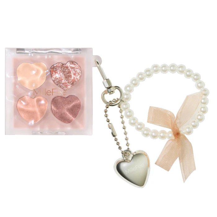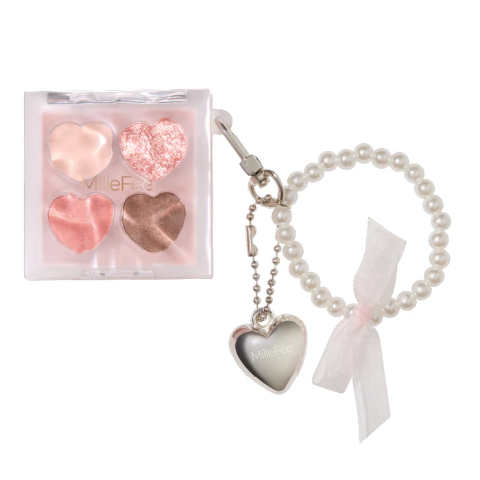 大口注文・法人のお問い合わせはこちらかわいいチャームつきの涙袋用アイシャドウパレット。涙袋用3色、涙袋の影用1色の4色入りパレットで、自然な涙袋をつくります。 付属品は、取り外し可能なランダムカラーのリボンつきハートチャーム!