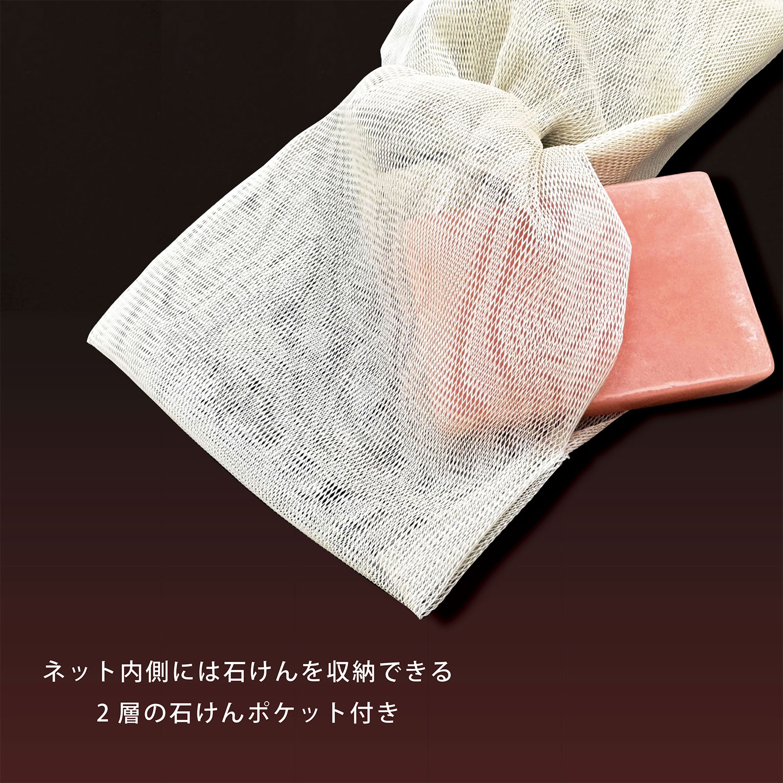 高さが20cm もあるので泡立ちが抜群によく、更に目が細かくやわらかいカラーネットを使用している ので、キメの細かいやさしい泡が立ちます。