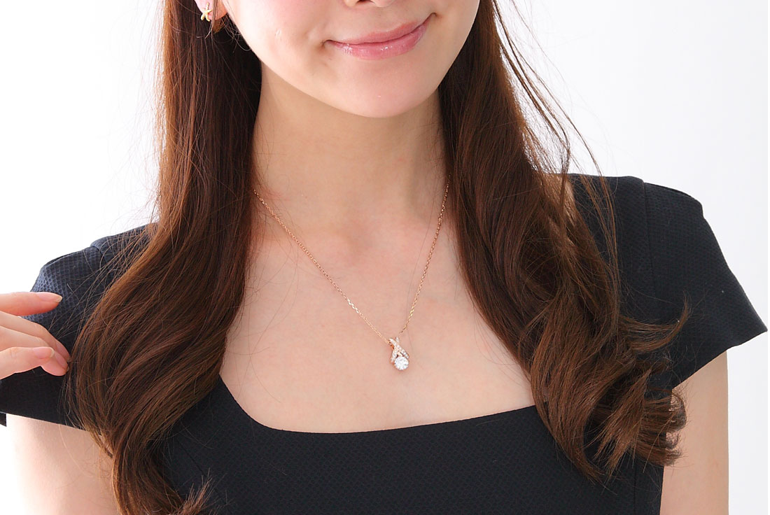 肌に馴染むデザインのペンダントトップに、存在感ある大粒のストーンは繊細な煌きが魅力的です。