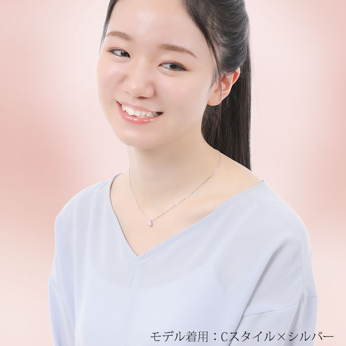 ピンクソリティアネックレスは、シンプルで身に着けやすいデザインです。そのため服装やシーンに縛られず幅広い場面でご使用いただけます。