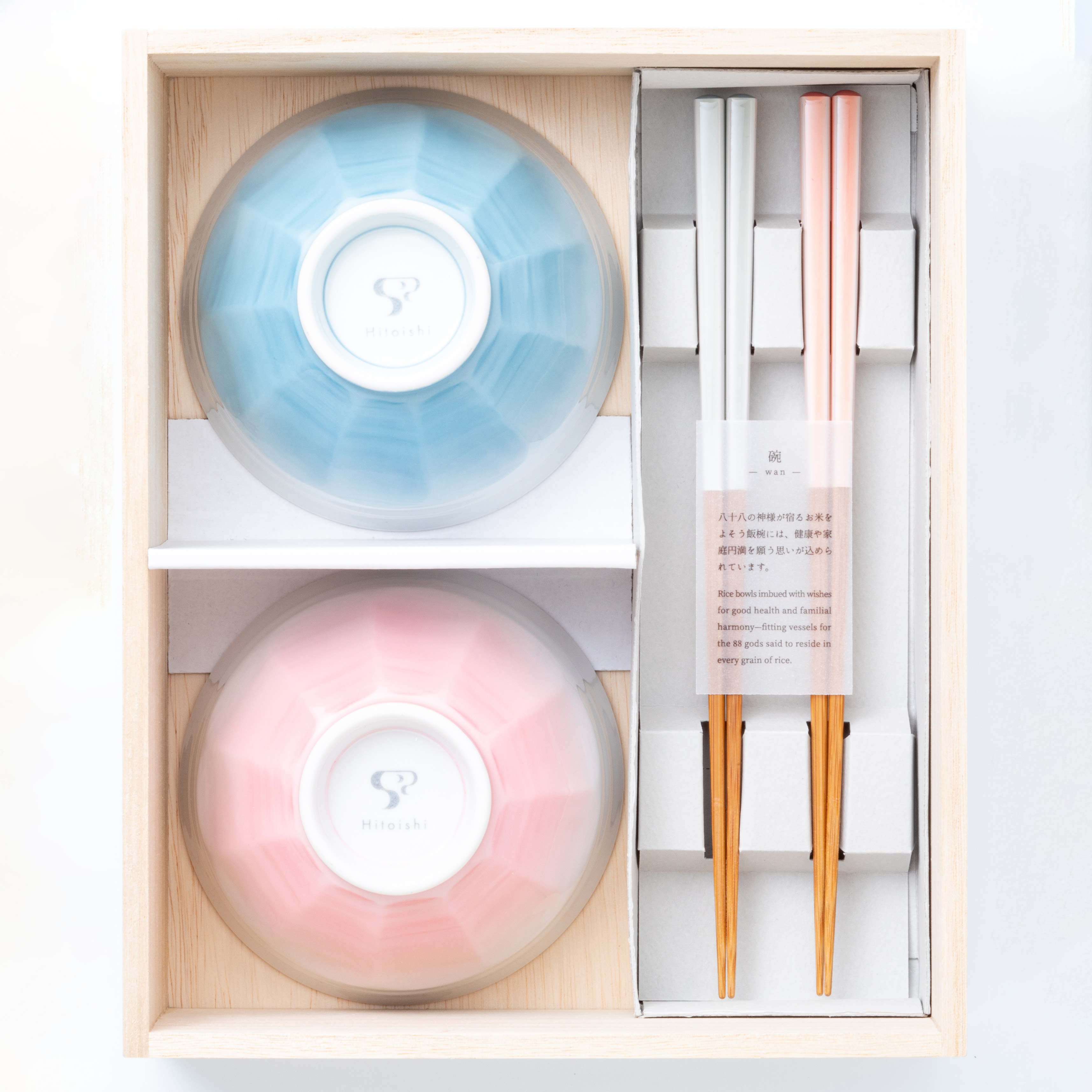 大口注文・法人のお問い合わせはこちら可愛らしい色合いの飯碗とお箸のセット。 八十八の神様が宿るお米をよそう飯碗には、健康や家庭円満を願う思いが込められています。 ※箸:食洗器対応 ※茶碗:食洗器対応・電子レンジ対応