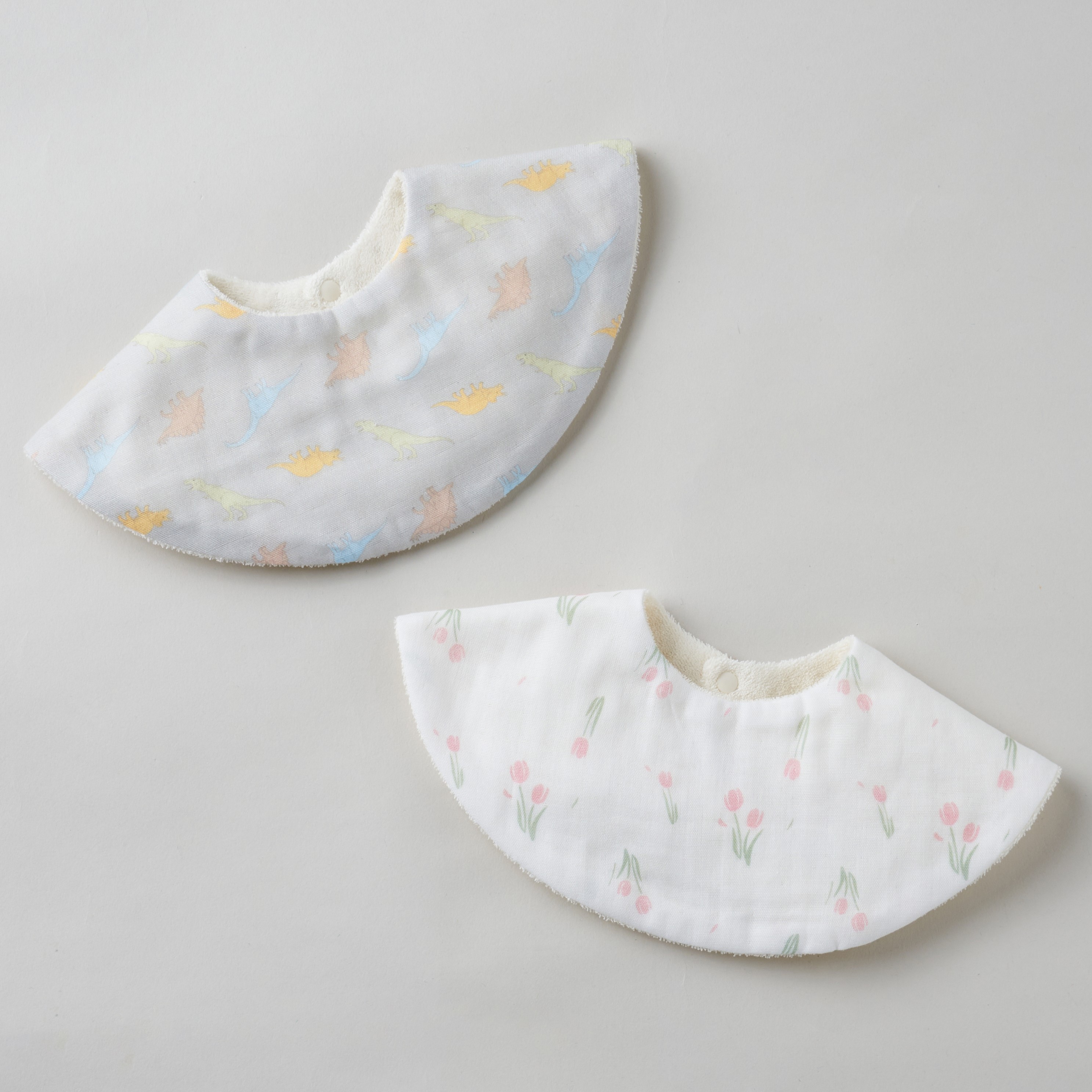 まぁるいスタイは表面がコットン、裏がパイル素材なので赤ちゃんの肌当たりもよく、吸水性もあります。 スナップボタン使用でつけ外しも簡単です。