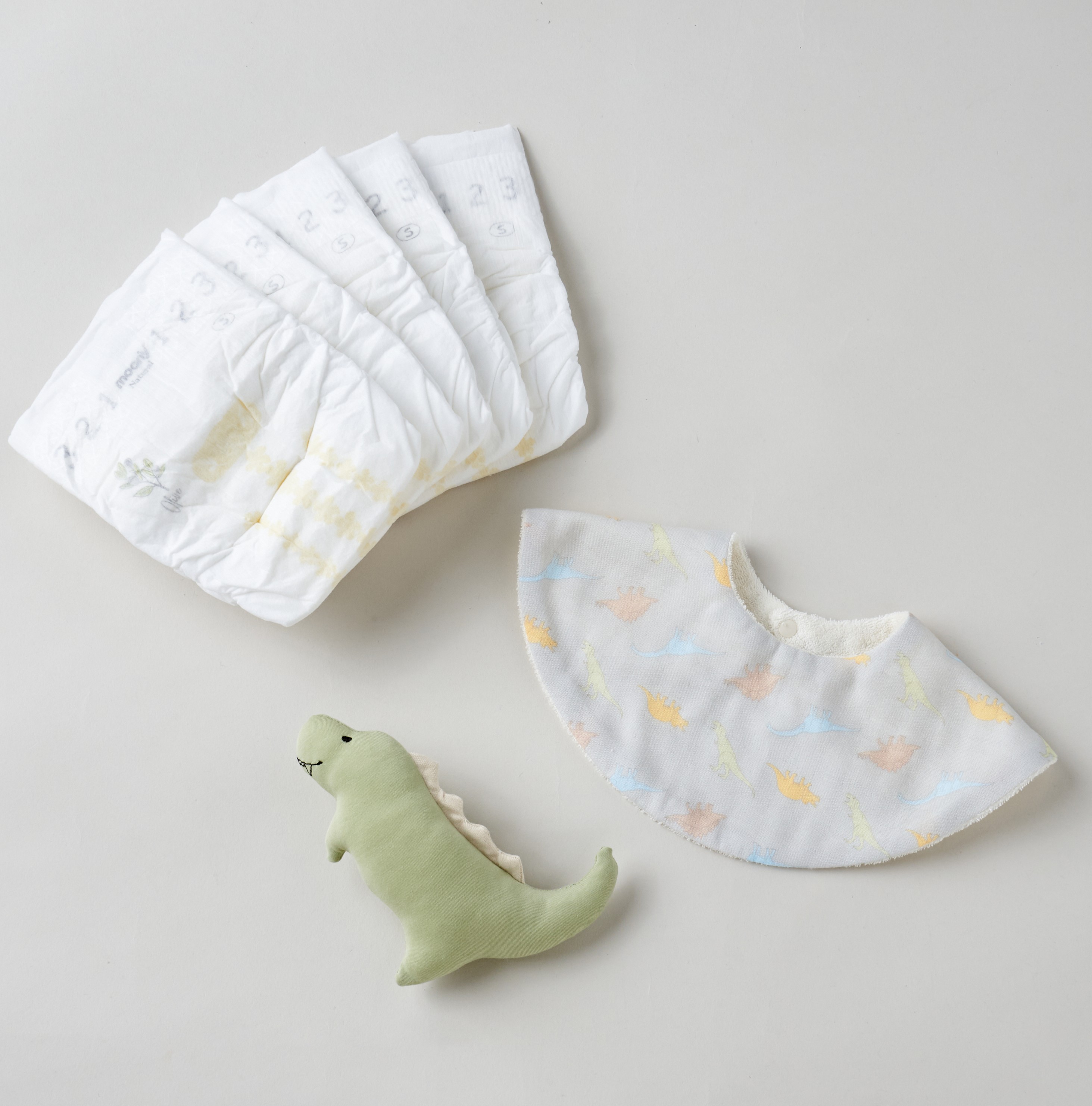 | セット内容 | ・スタイ 1枚 ・ラトル 1個 ・おむつSサイズ 5枚 |