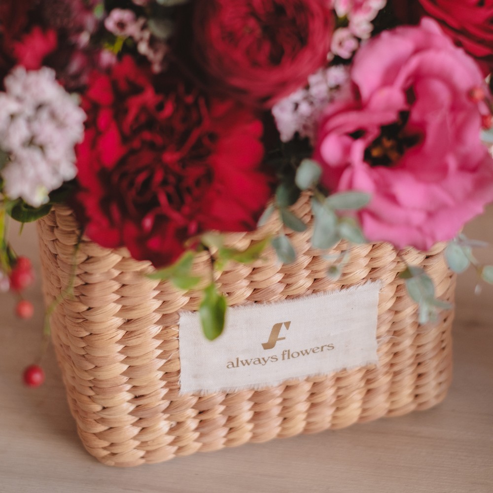 女性のココロがときめくフラワーアイテムを提案する「Always Flowers(オールウェイズ フラワーズ)」。人気のフラワーバッグアレンジに第3弾がついに登場!!スクエアのカゴバッグは、ガーリーだけど個性派なフォルムが人気のスタイルです。