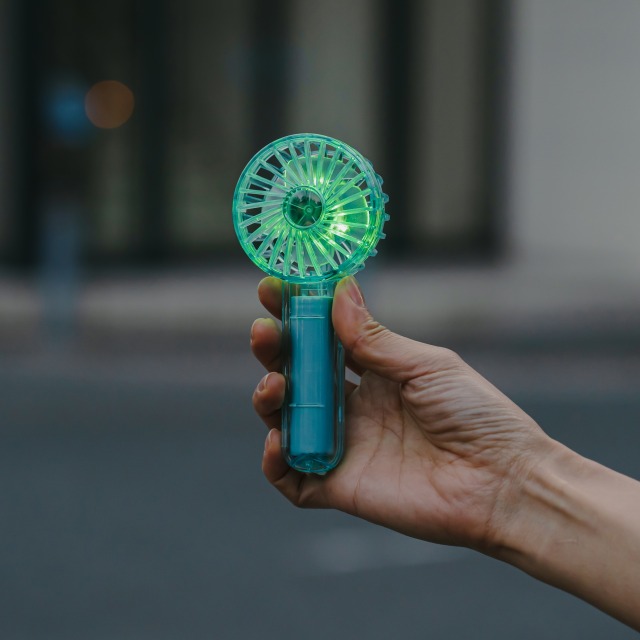 ポップなスケルトンの外観を持つおしゃれなファン。クリアなデザインが涼しげで、写真映えアイテムとしても最適なハンディファンです。コンパクトサイズのため、小さなお子様でも持ちやすく、鞄やポケットにも楽々収納。自動で7色に変わるLEDライトは、夜のお祭りやイベントを楽しく盛り上げ、注目を浴びること間違いなし。涼みながら目でも涼感と楽しさを堪能いただけます。