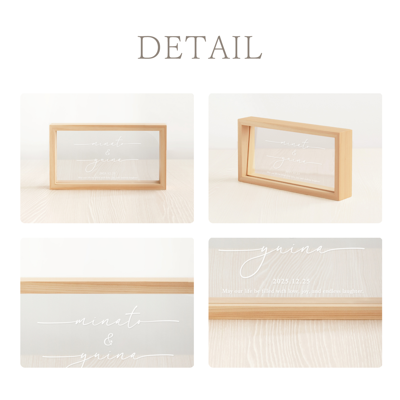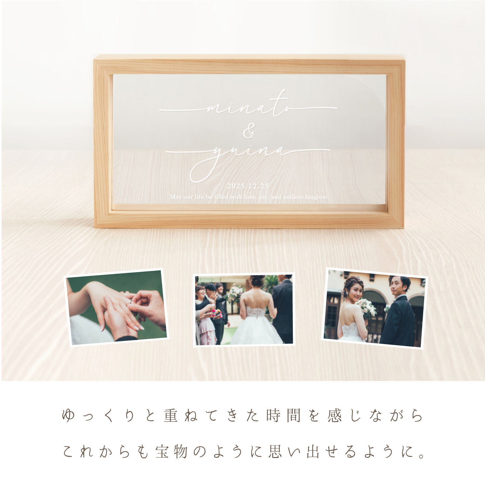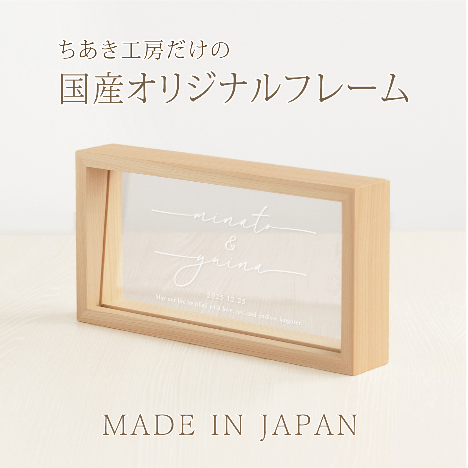 日本の家具職人が仕立てた天然木のフレームに、美しい国産アクリルを組み合わせた、上質なメモリアル。 ナチュラルな雰囲気で、お部屋にさりげなく馴染みます。
