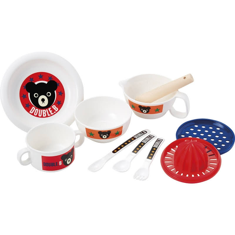 大口注文・法人のお問い合わせはこちら| 内容 | スープマグ(φ8.5×5.1cm)・ベビープレート(φ15.7×2.8cm)・ライスボウル(φ10.3×4.9cm)・スプーン・フォーク・フィーディングスプーン・すり棒・果汁しぼり器・おろし器・すり鉢×各1 材質:ポリプロピレン、天然木、AS樹脂、シリコンゴム |