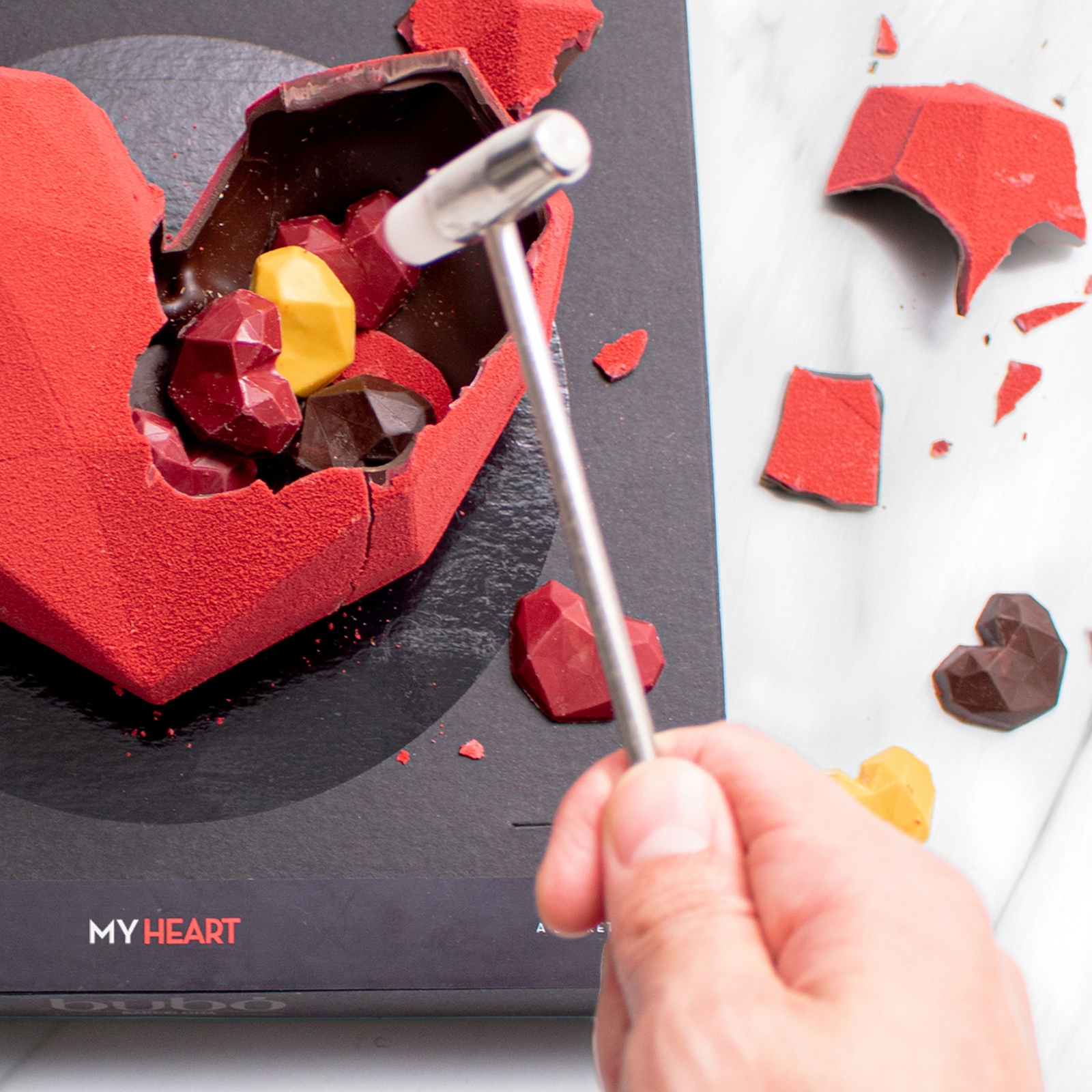 ダークチョコレートでかたどった手のひらサイズのハートの中に、心ときめく3つのハートを詰め込みました。