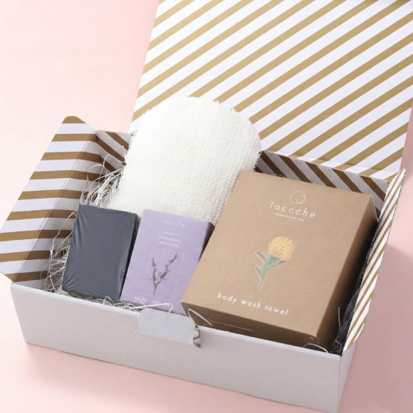 2025年春に誕生したボタニカルスキンケアのブランド「laccche(ラッシェ)」の手洗いのような肌あたりのボディタオル&ボディ用ヴィーガン石鹸のセット。極上の使用感、心地よい香りと共に、リラックスタイムを彩ります。