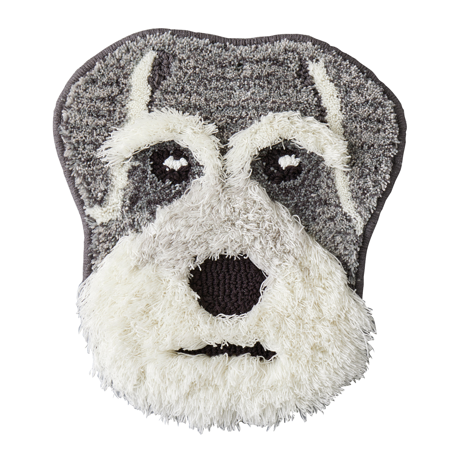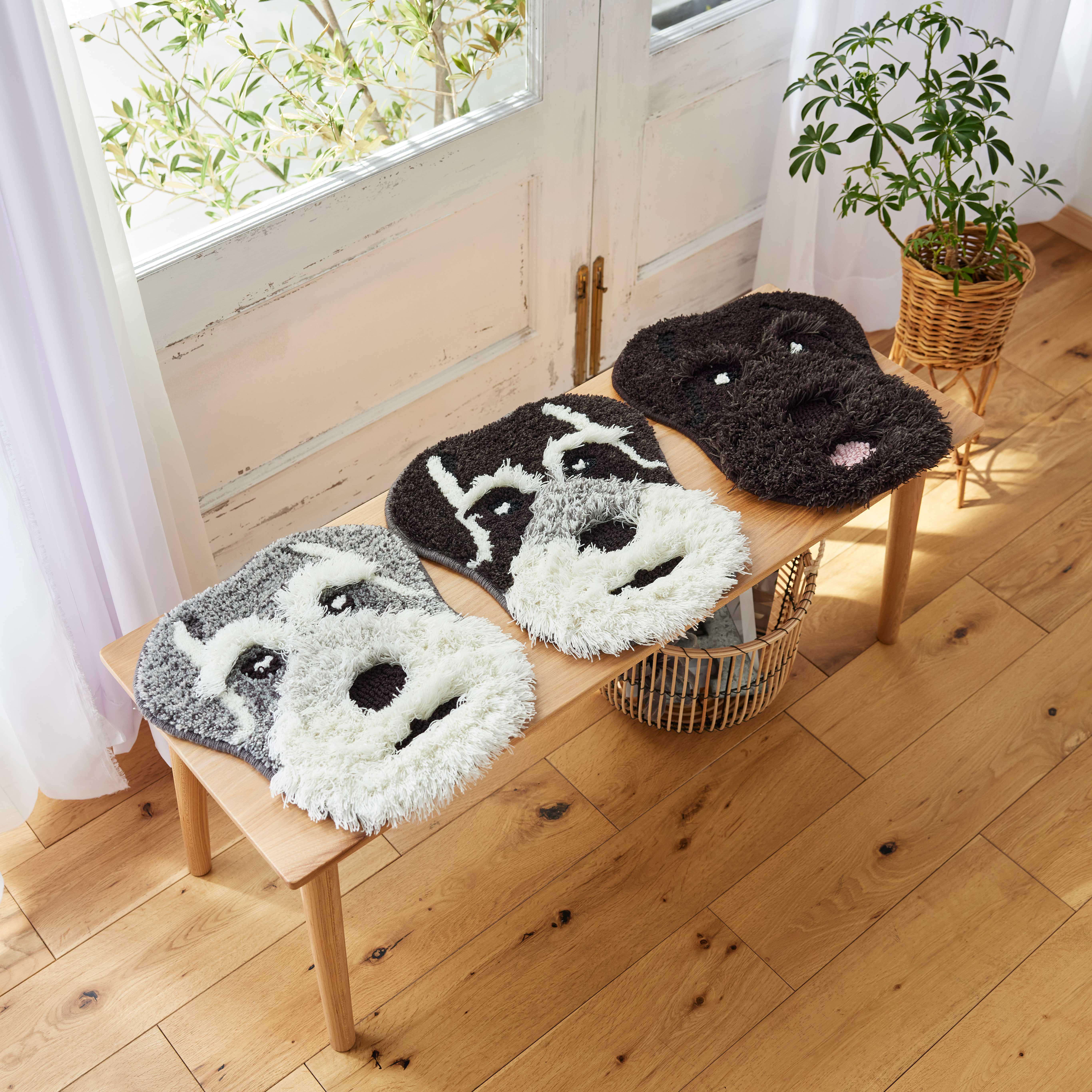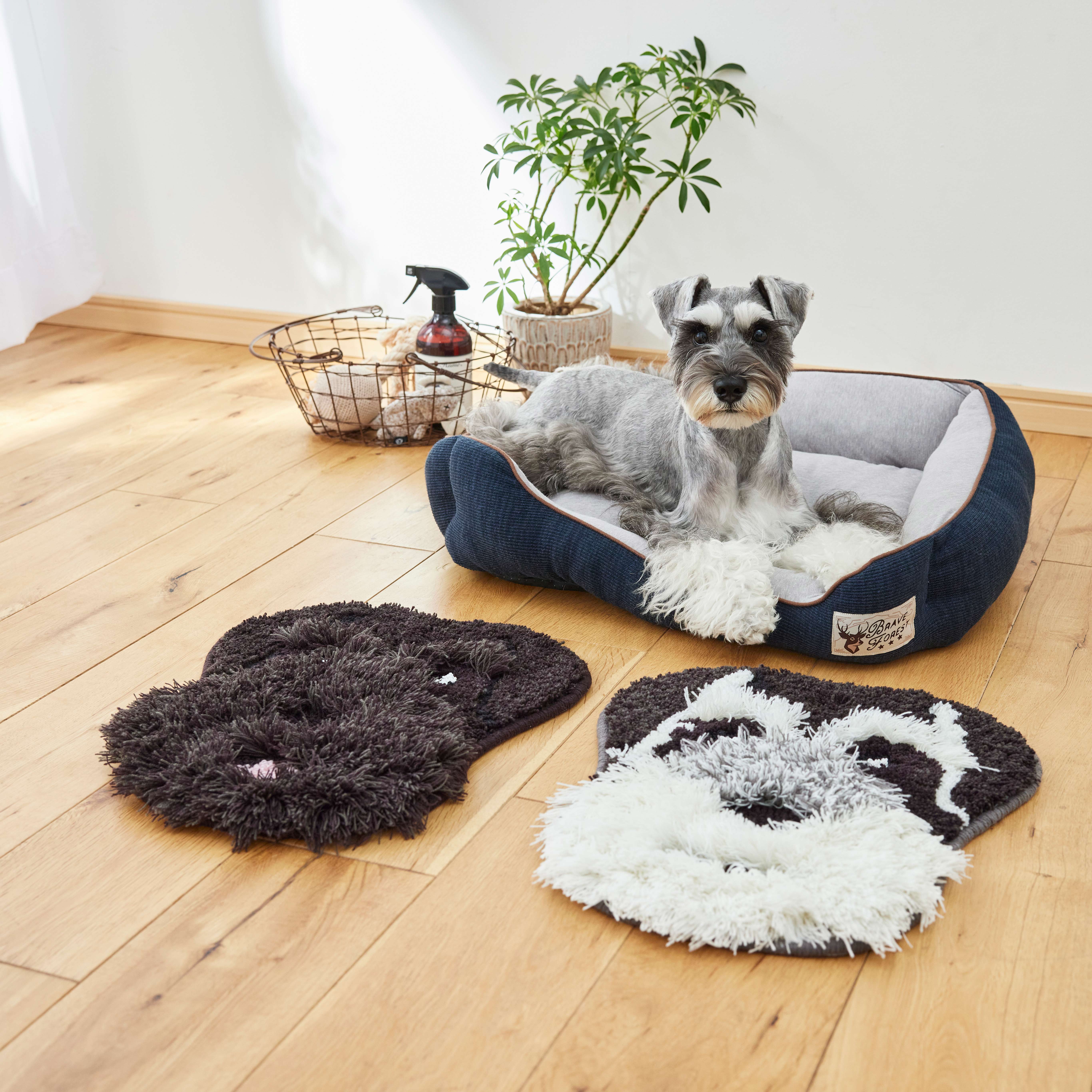 パイルで表現したヒゲと毛並みが可愛いシュナウザーのお顔のマット。犬好きのお相手の方へおすすめの贈り物です。引越しのお祝いや誕生日のギフトにもぴったり。玄関マットやチェアパッドとしてお使いいただけます。