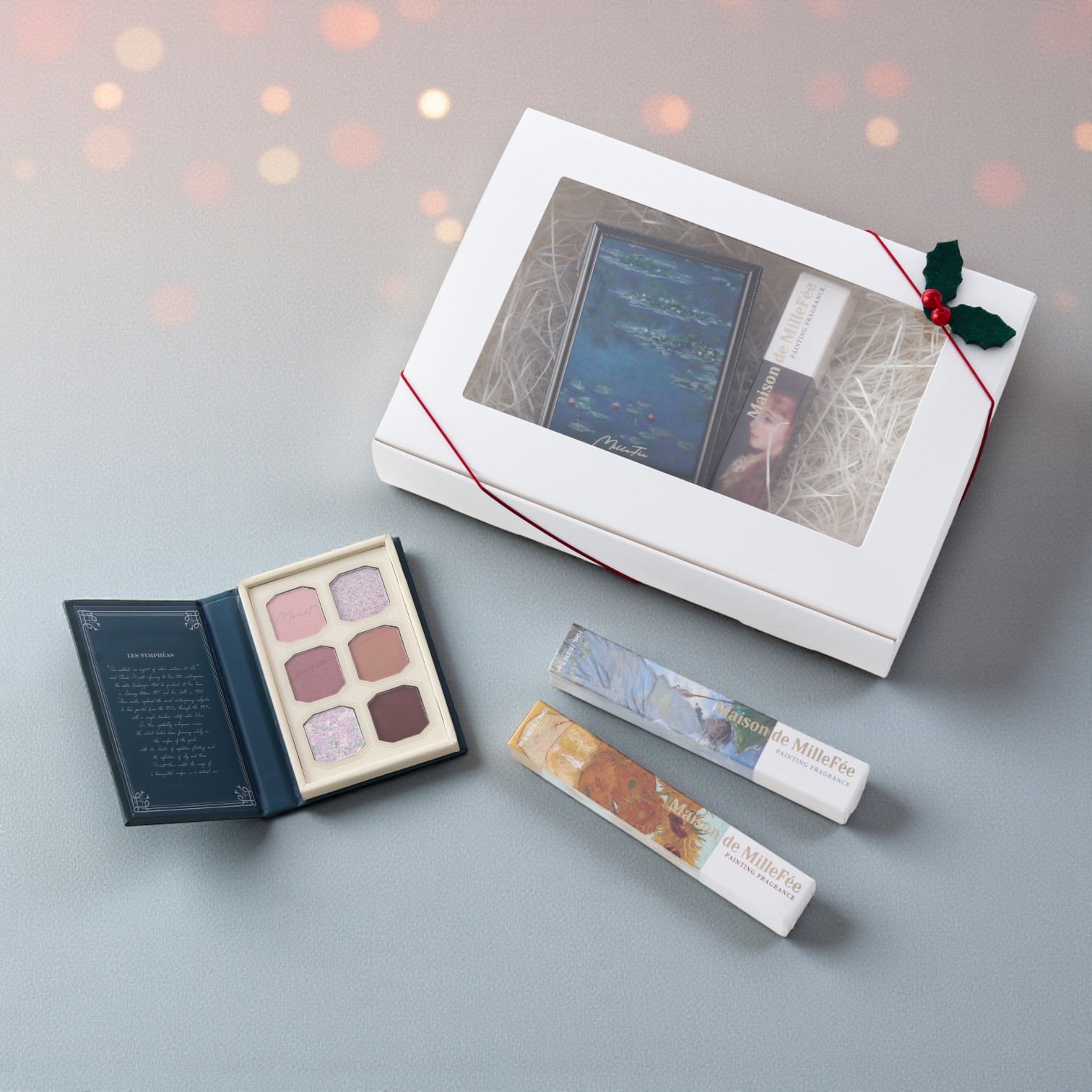 大口注文・法人のお問い合わせはこちら絵画からインスピレーションを得たフレグランスとアイシャドウパレットセット。 専用のBOXにお入れしてお届けします。 パレットとフレグランスはお揃いでも、お好きなデザイン同士で選んでいただいてももちろんOK。 お気に入りの組み合わせを探してみてください。
