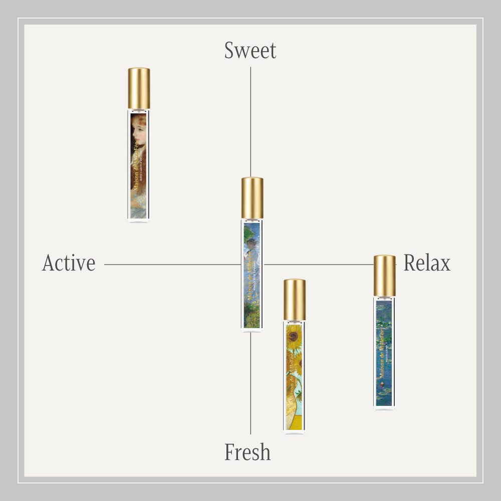 Artistry in Scent〜世界の芸術を香りでまとう〜 絵画からインスピレーションを受けた本格的な香りのフレグランス。持ち運びに適したコンパクトサイズで、いつでも絵画の世界観を感じられるオードパルファムです。