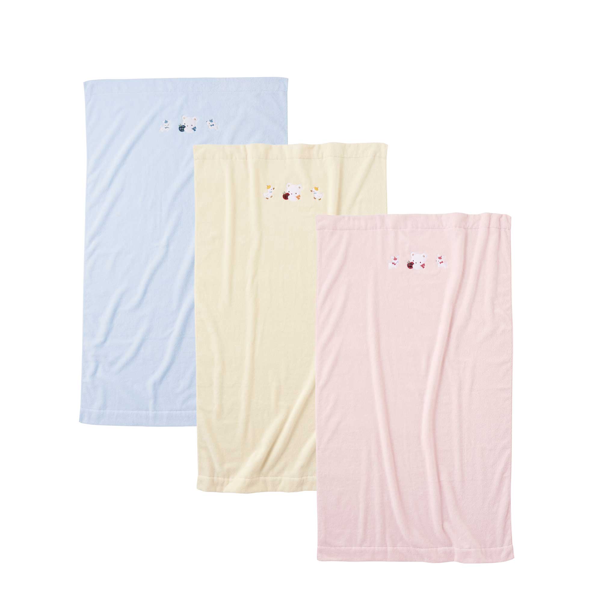 | カラーとモチーフ | ・BL(ブルー):クマとテリア ・IV(アイボリー):クマとアヒル ・PK(ピンク):クマとウサギ |