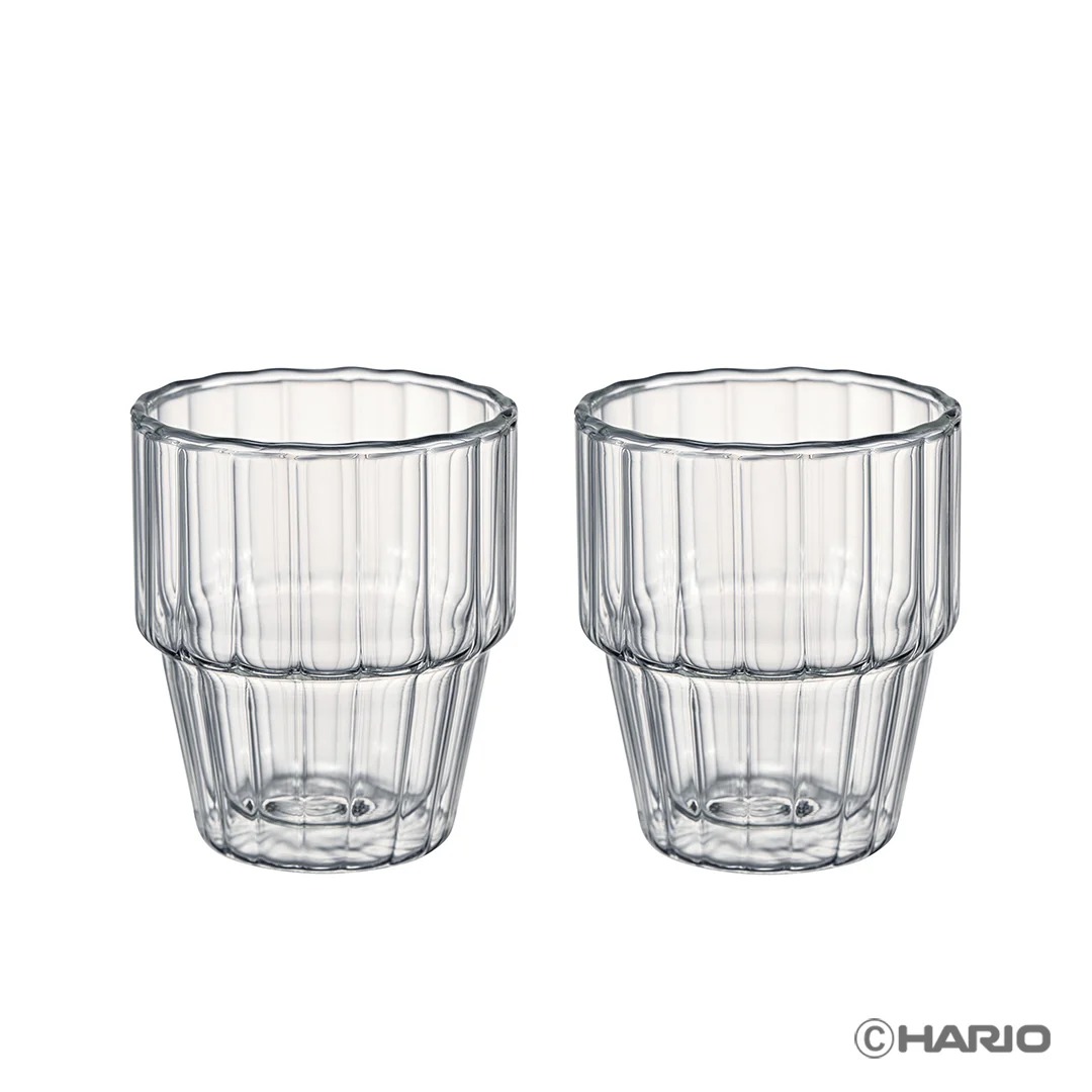 縦のラインでガラス素材の魅力をより感じられるダブルウォールスタックグラス2個セット。結婚祝いや新築祝い、新生活のお祝いにぴったりなペアセットです。