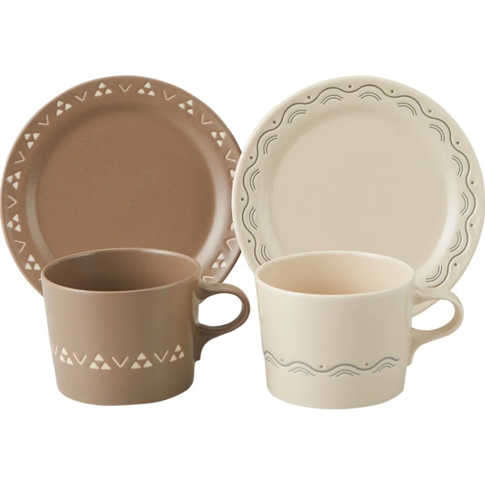 ◉マグ(アイボリー) ×1 ◉マグ(ブラウン) ×1 ◉プレート(アイボリー) ×1 ◉プレート(ブラウン) ×1