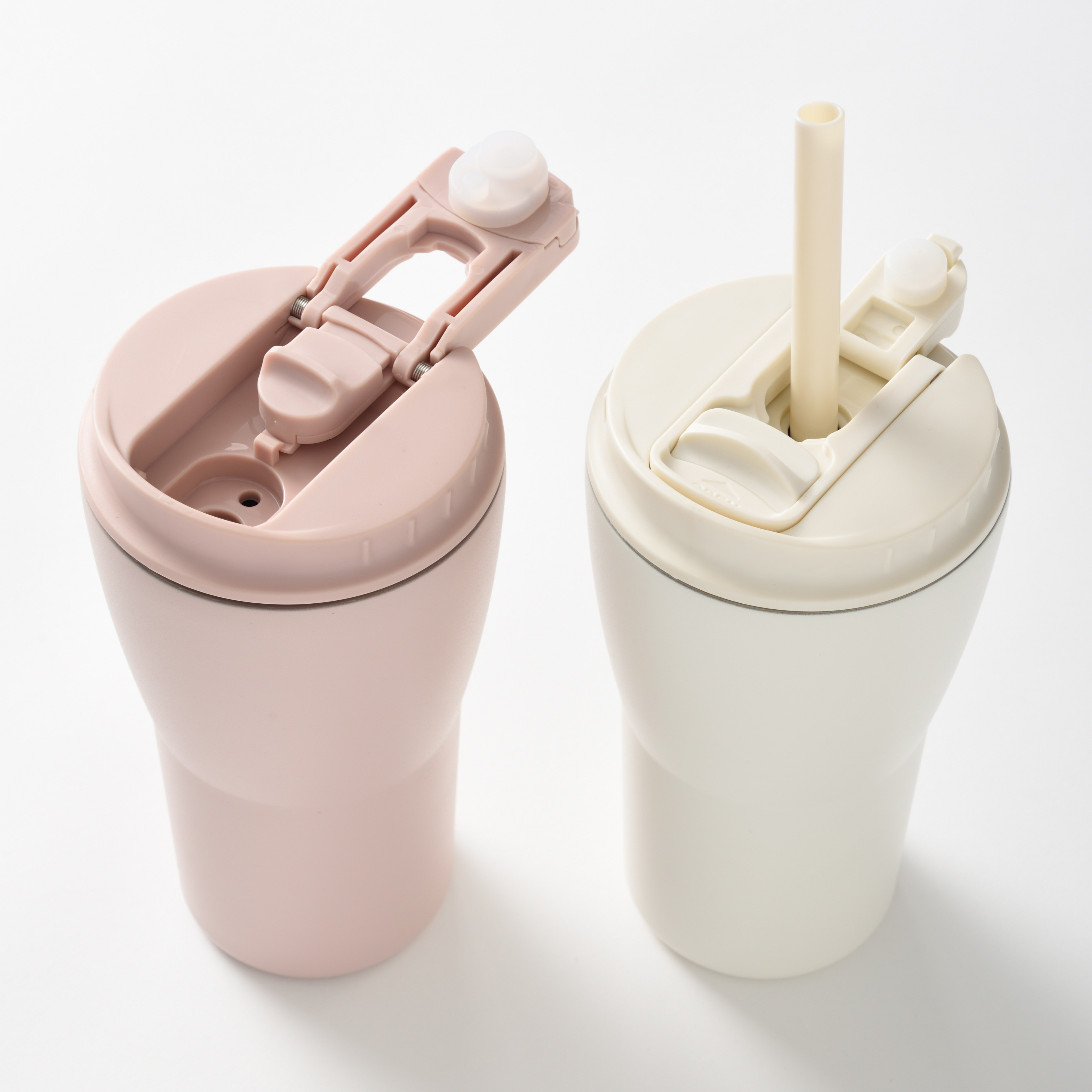 大口注文・法人のお問い合わせはこちらマットな質感とユニセックスなカラーに、片手でも握りやすいスリム形状。 水分補給をもっとアクティブに快適に、毎日を潤すストロータンブラーです。