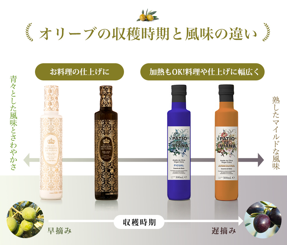 収穫から出荷までの全行程を100%管理して、高品質で美味しい2つの良質なオリーブオイルの組み合わせです。