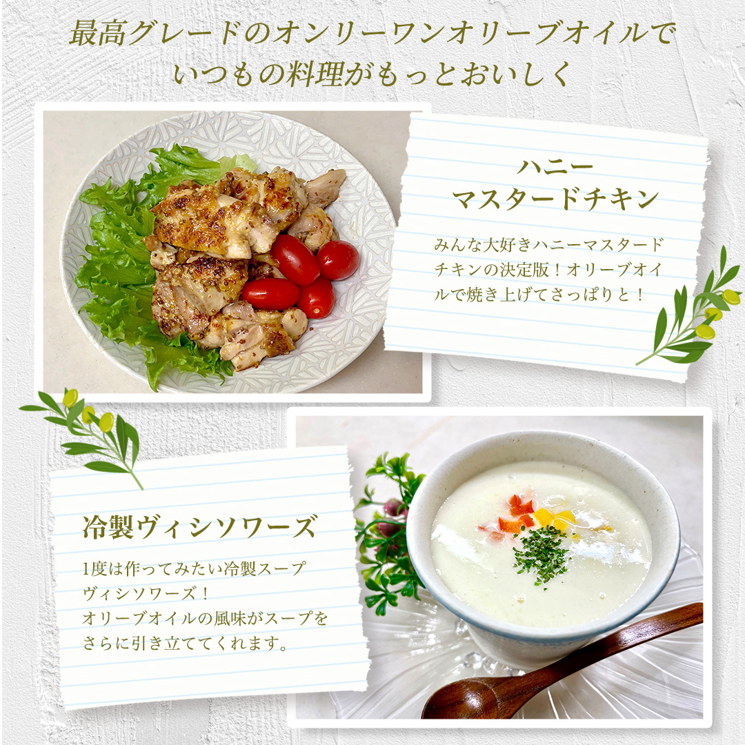 素材の味がぐっと引き立つオリーブオイル。 最後の仕上げにかけるだけで料理の美味しさを格段に引き立て この1本でひと手間かけた味が完成。