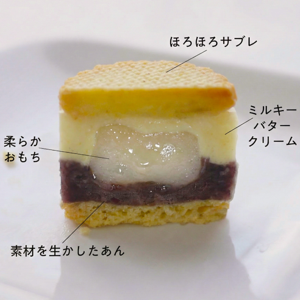 サクほろサ自家製ブレで、おもち・あん・バタークリームをサンド。