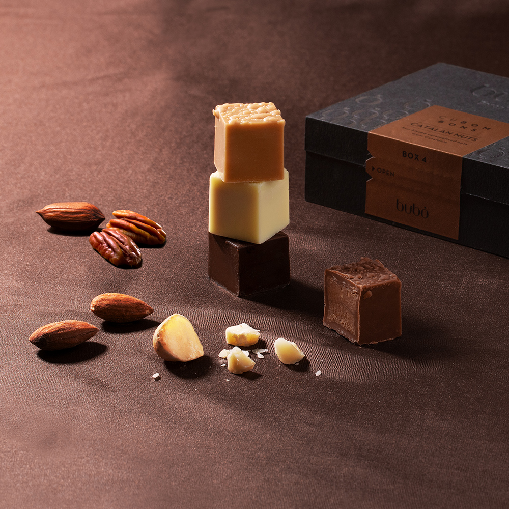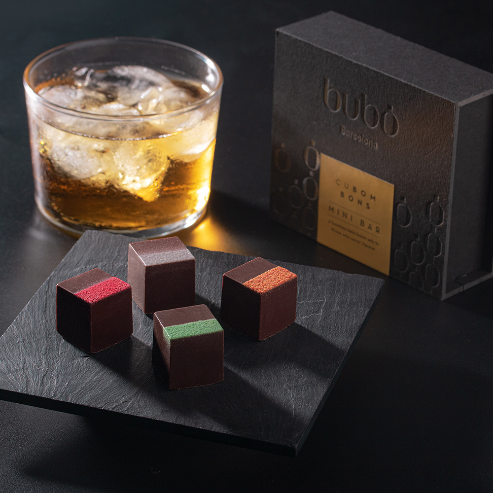2005年、スペインのバルセロナに誕⽣した独創的且つ繊細なデザートの世界を追求するパティスリー「bubó BARCELONA(ブボ・バルセロナ)から、4種の味が楽しめるキューブ型のボンボンショコラをお届けします。