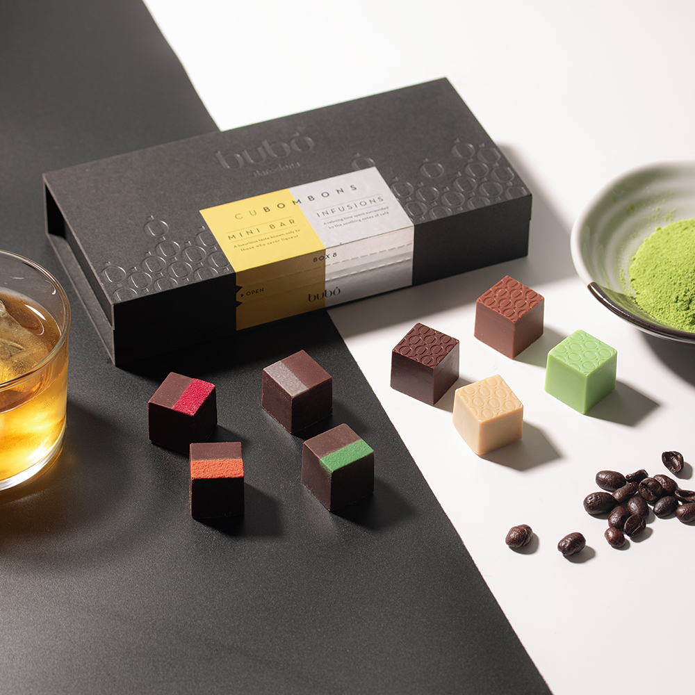 2005年にスペインのバルセロナに誕⽣したパティスリー「bubó BARCELONA(ブボ・バルセロナ)」のキューブボンボンです。
