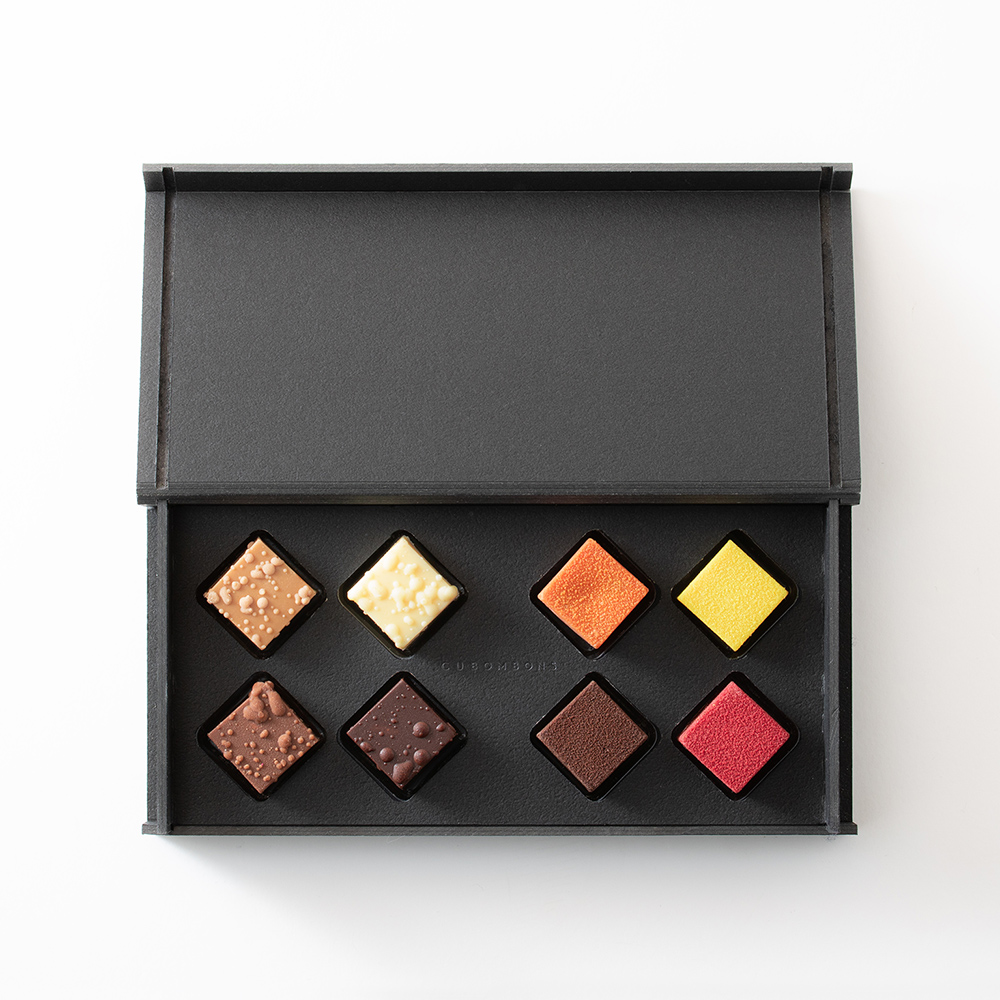 ナッツの豊かな風味を味わえる「カタランナッツ」と、果実の美味しさを閉じ込めた「フルーツ」を組み合わせた、キューブ型のボンボンショコラ8種セット。 ザクザクとした食感のプラリネ、口どけなめらかなフルーツのガナッシュと、チョコレートの奥深い味わいを存分に味わえます。
