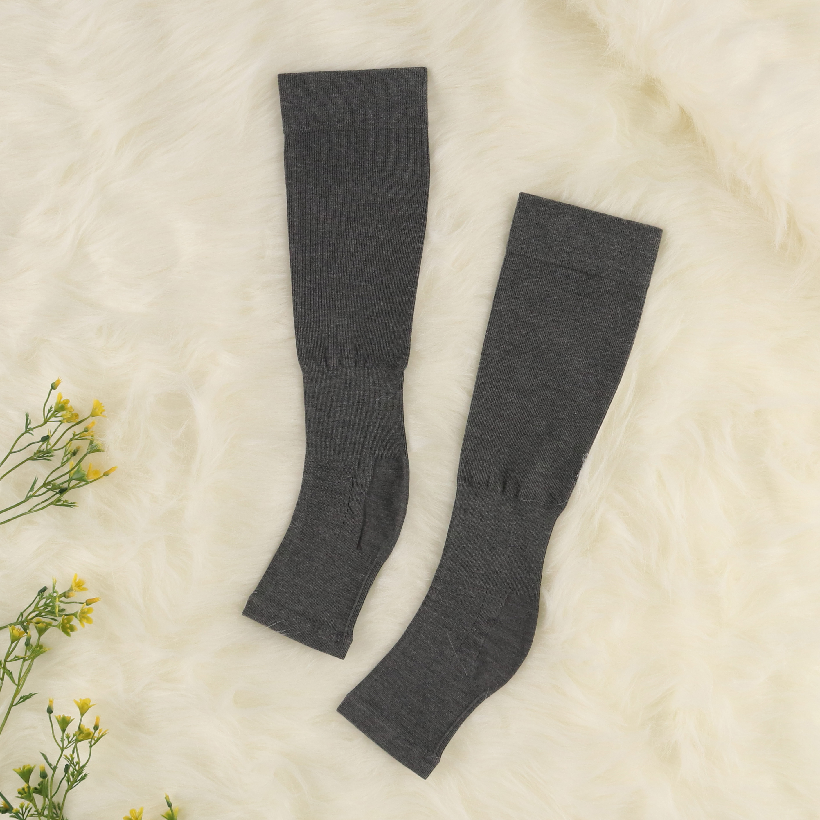 足先がしめつけられずラクなオープントゥタイプ。寒さを感じる時や、足先が出ているのが気になる時は、普段のソックスとの重ねばきがおすすめです。※着圧のあるものは重ねばきしないでください