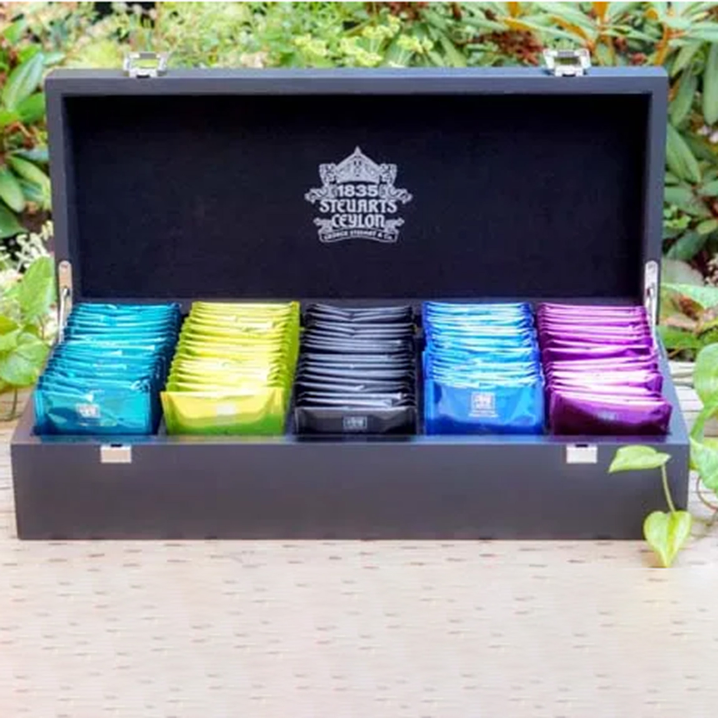 George Steuart Teaの紅茶全5種類が使いやすいティーバッグタイプで20個ずつ入ったギフトボックスです。木製のギフトボックスで重厚感があるので、大切な方への贈り物にぜひご活用ください。一袋ずつ個包装されており、淹れるたびに新鮮な香りに包まれます。