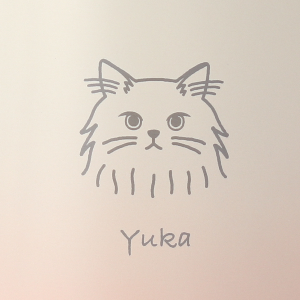 名前と猫のイラストを刻印できるグラデーションカラーがかわいい、人気のラウンドサーモタンブラーです。薄いクリーム色をベースに、優しい色合いのグラデーションカラーです。錆びにくく清潔に保ちやすいため、日常使いにおすすめです。