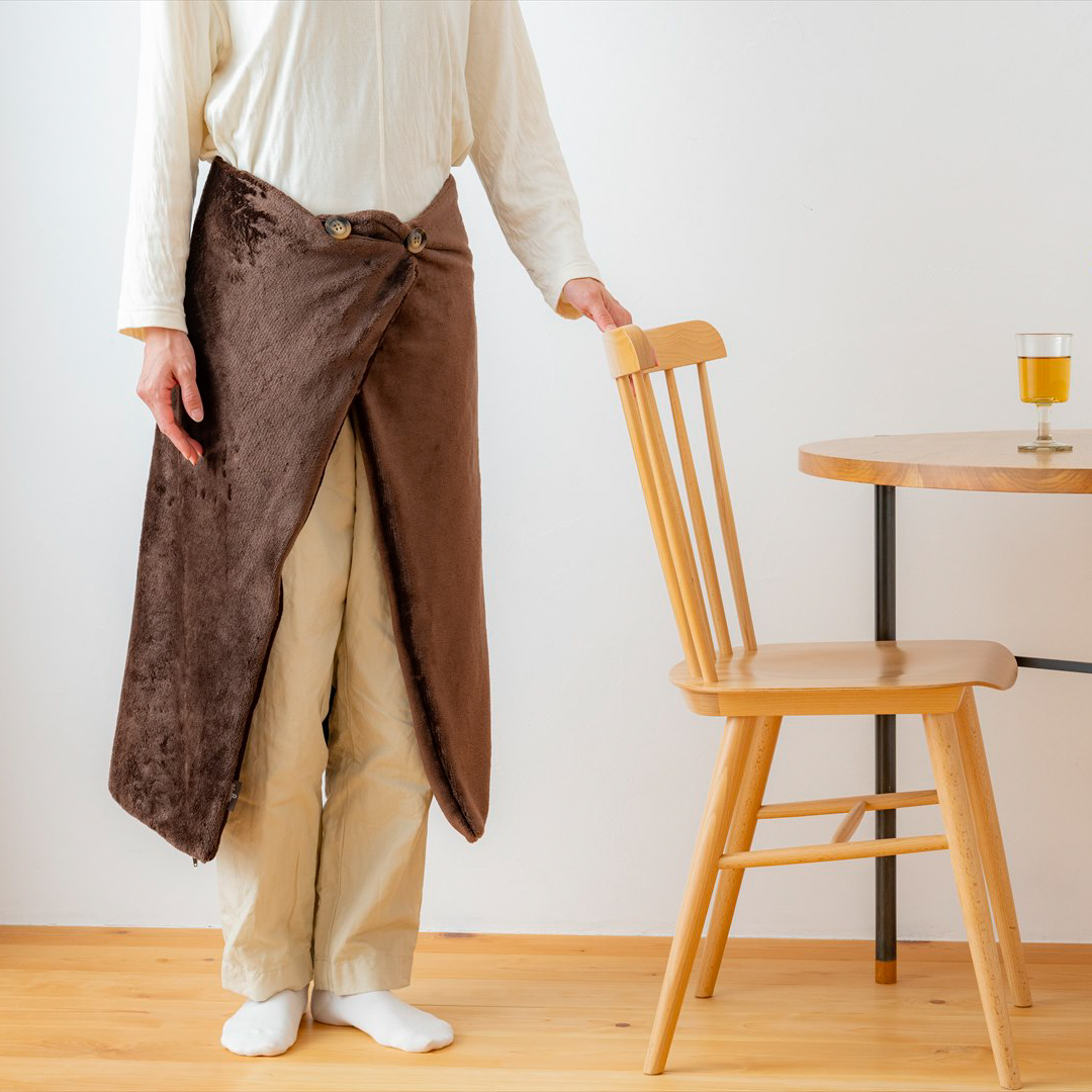 ひざ掛けやフロアに敷いてのご利用はもちろん、ボタン付きなので肩や腰に巻いて固定ができます。 また、ふんわり軽量で柔らかくそのままでも温かいので通常ブランケットとしても使えます。