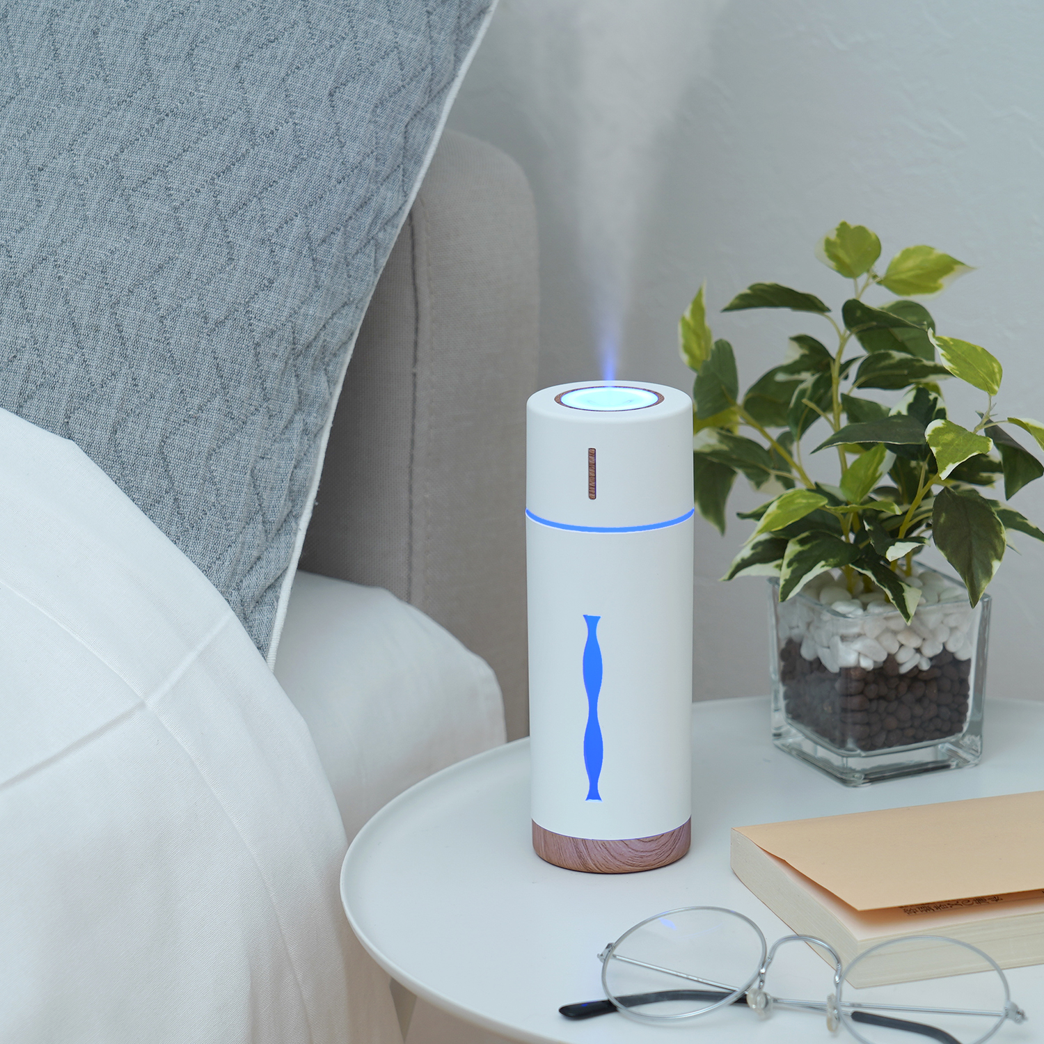 木の素材感を取り入れたスタイリッシュな加湿器は、ベットサイドやドライブでの使用にピッタリ!