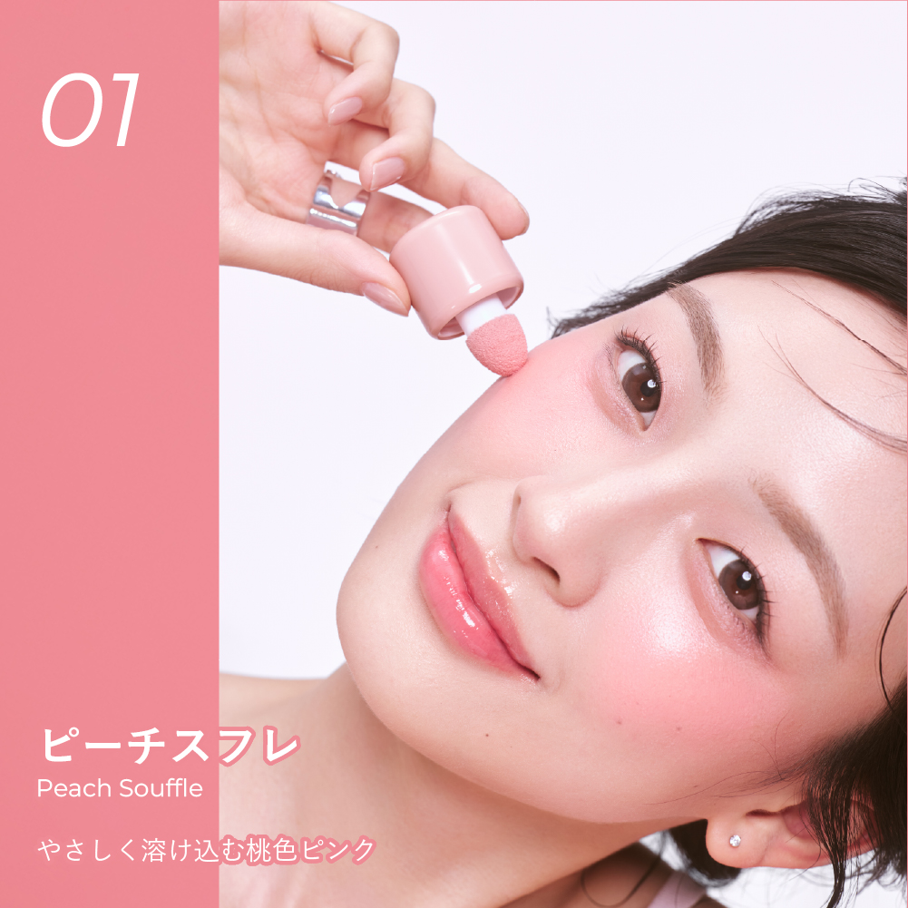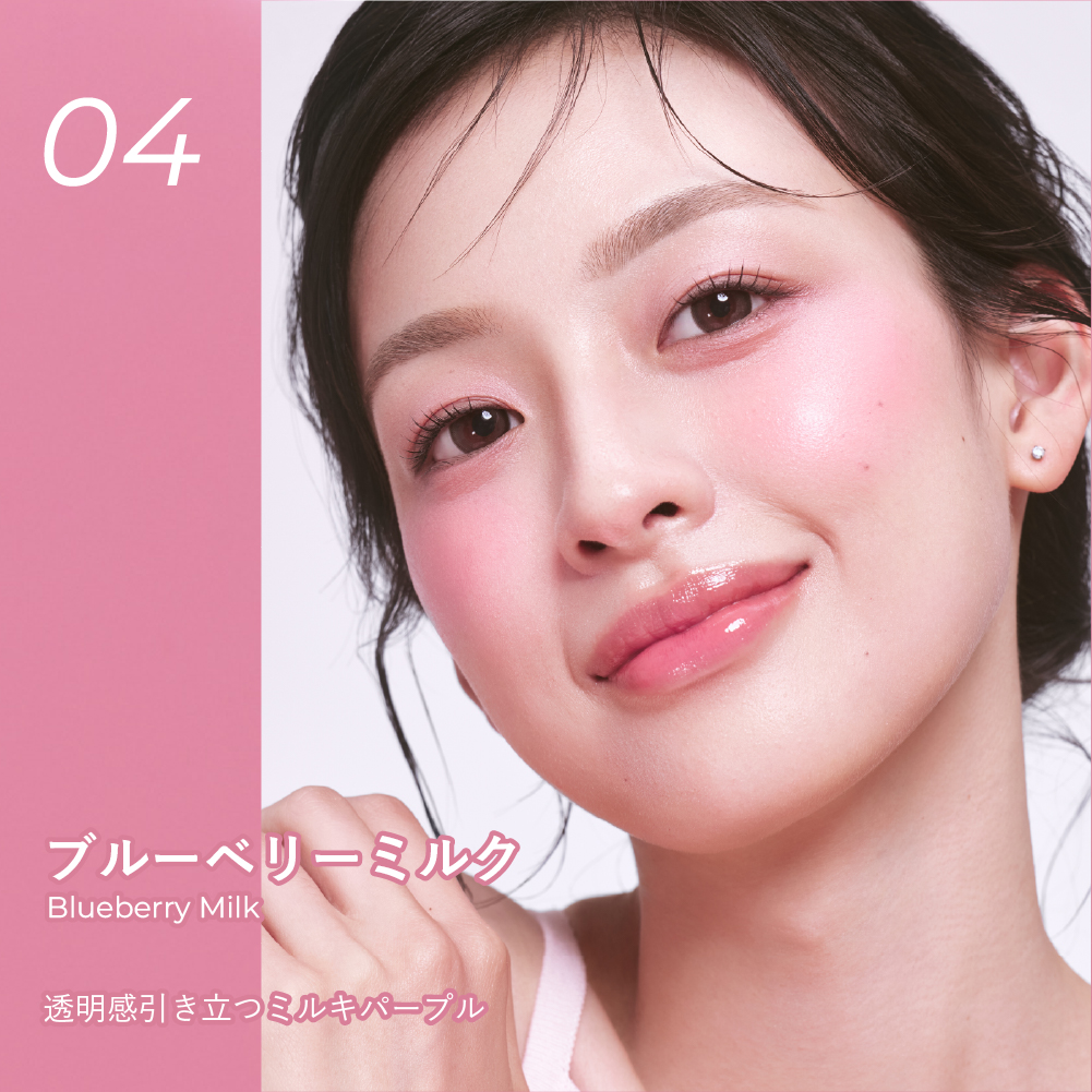 ふんわりした淡い血色感とジュワッとツヤ感を両立させ、頬を自然にかがやかせます。みずみずしいテ クスチャーで軽やかな仕上がりに。