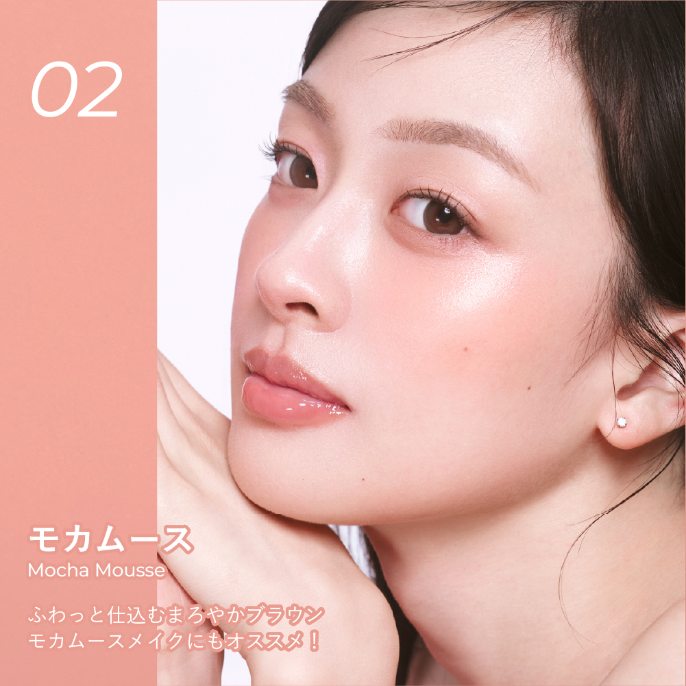 ベースメイクの上からでもムラなく密着し、しっかりとした色持ちを実現。肌の動きにフィットして崩 れにくい設計で、美しい仕上がりをキープします。