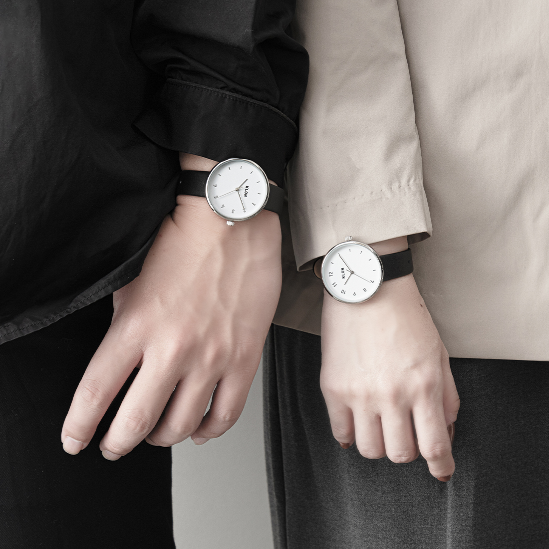 モノトーンで構成されたペアウォッチは、流行に左右されない普遍的な美しさを湛え、身に着ける二人の個性を静かに、そして確かに引き立てます。 細めに仕上げられた本革のベルトは、腕元に上質な印象を与え、カジュアルな日常から特別なフォーマルシーンまで、あらゆるシーンにぴったりです。