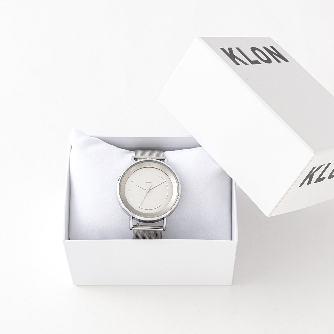 KLON SOLAR WATCH史上、最薄・最軽量ソーラーウォッチのペア。厚さ僅か8mmで手や腕への負担を軽減。付けていることさえ忘れてしまうスリムでライトな腕時計です。点が線に、そして縁になる。2つの盤面のデザインが重なると、点が線に。そして“縁”を描く2つで1つのデザインです。
